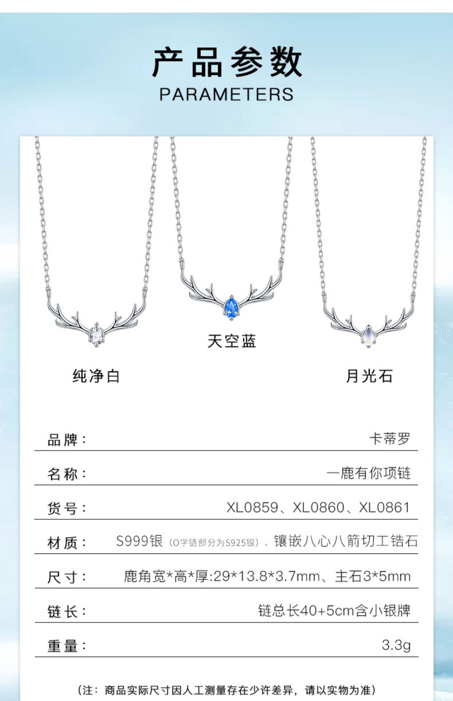KADER一鹿有你项链女999纯银轻奢小众高级设计感生日礼物送女友