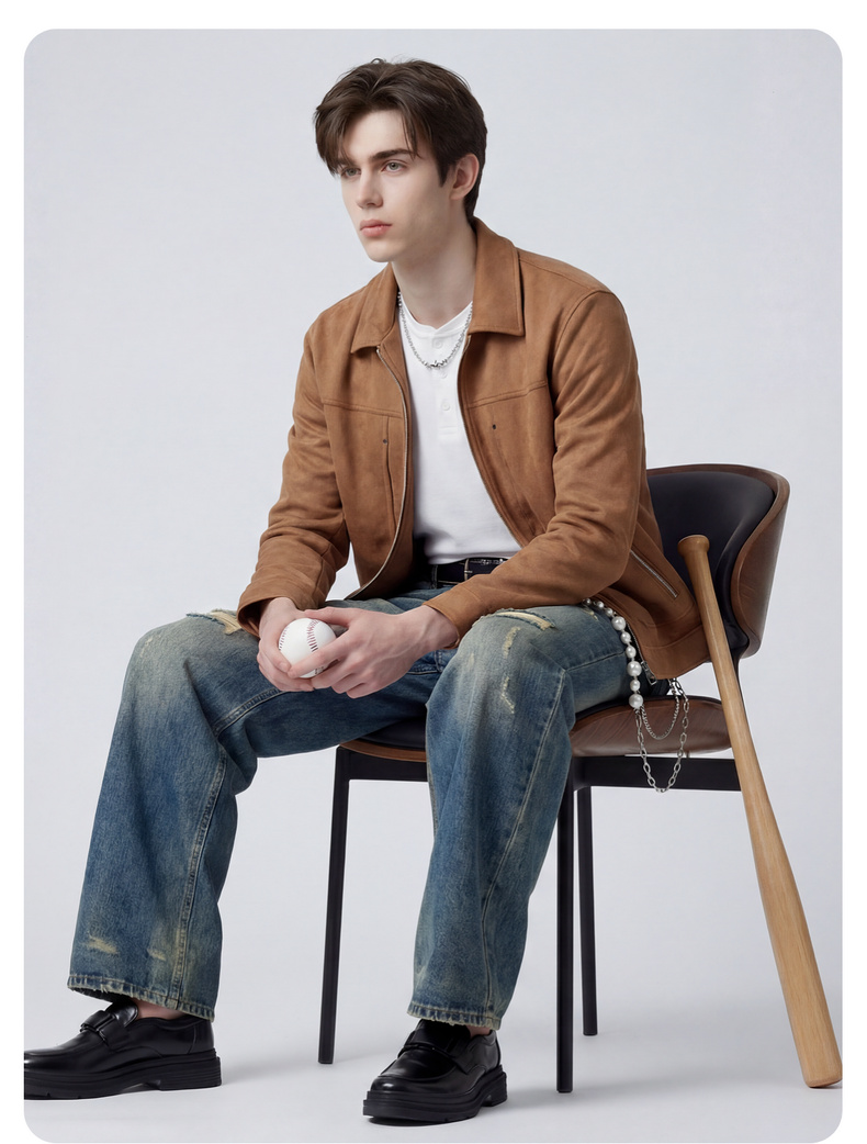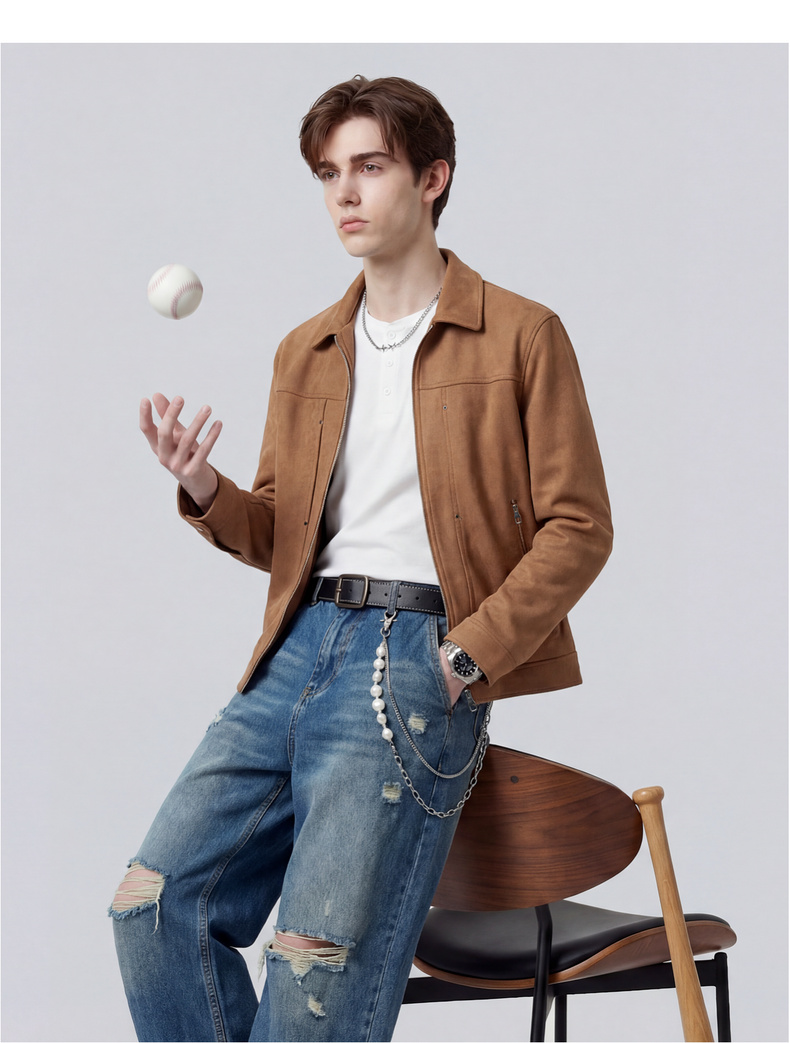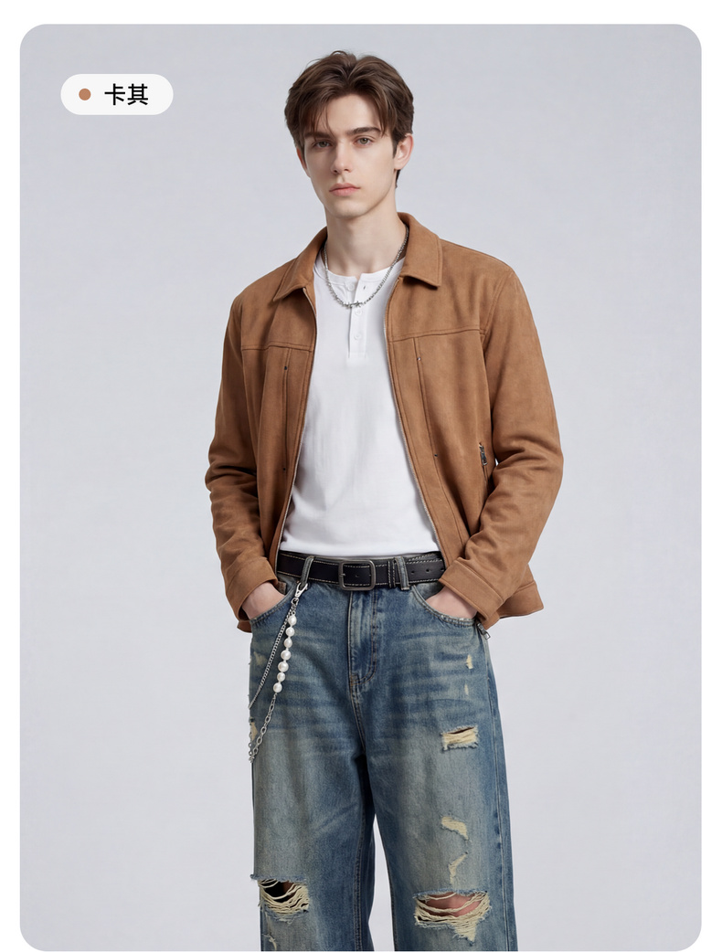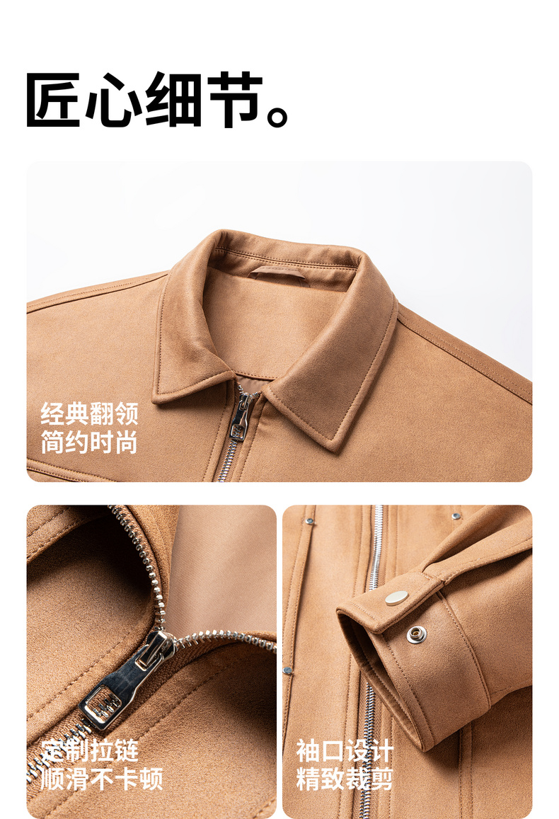 【仿麂皮】圣得西男士翻领夹克2026年春季新款耐磨易打理工装外套