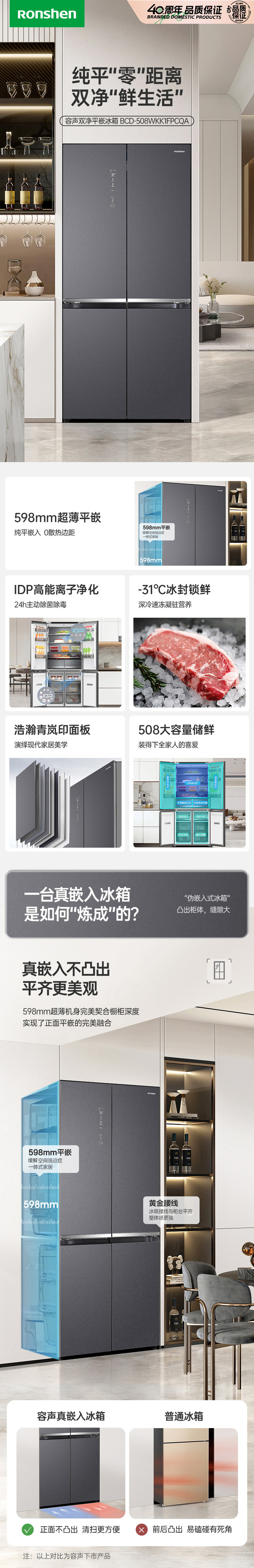 容声(202743)暮光印超薄嵌入式十字对开门508L冰箱 软冷冻BCD-508WKK1FPCQA