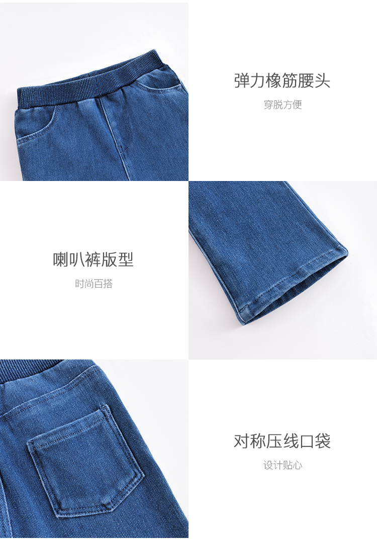 马克珍妮春 女童针织牛仔裤 儿童喇叭裤221558