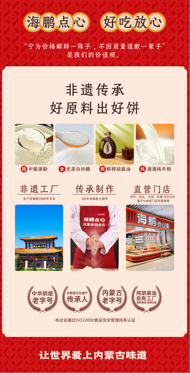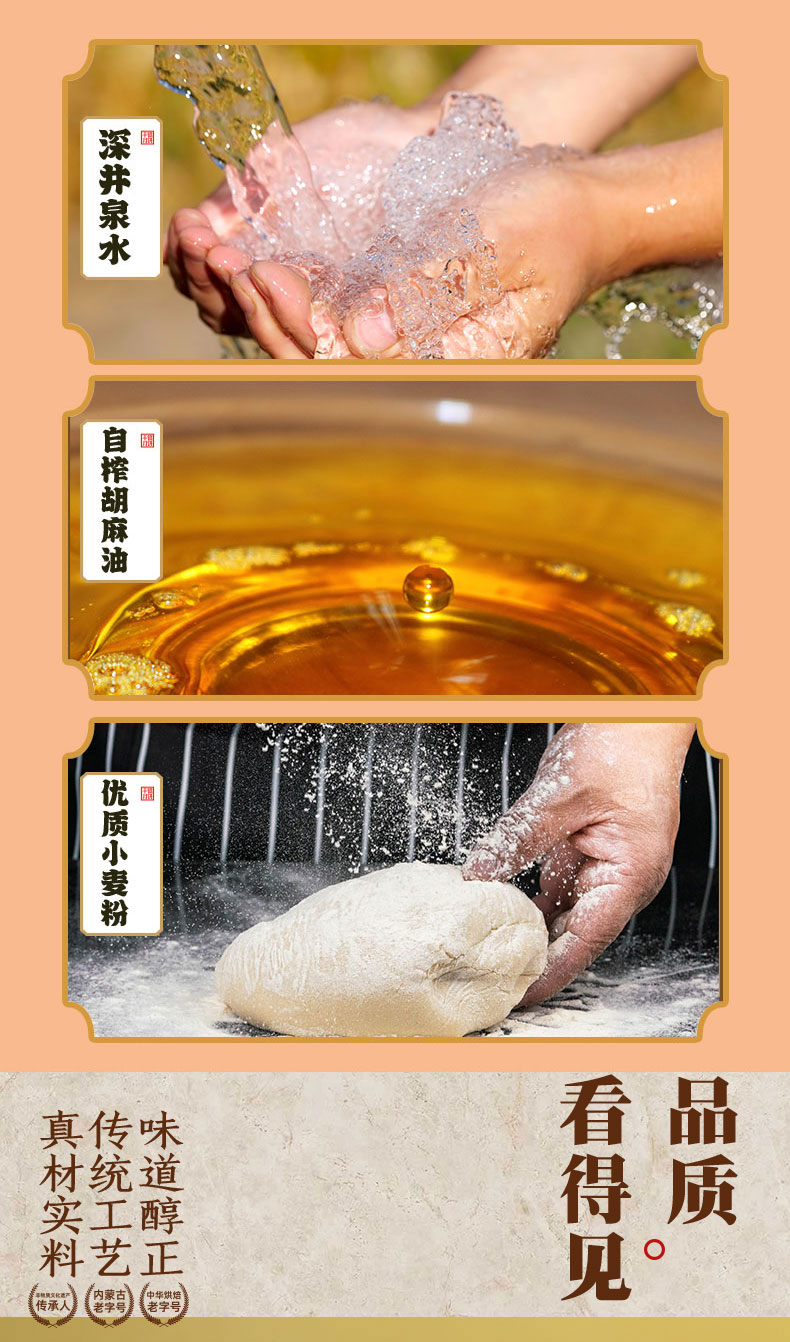 【传统月饼】海鹏丰镇月饼玫瑰、红枣、冰糖、黑糖蜂蜜、月饼特色胡麻油糕点10枚装