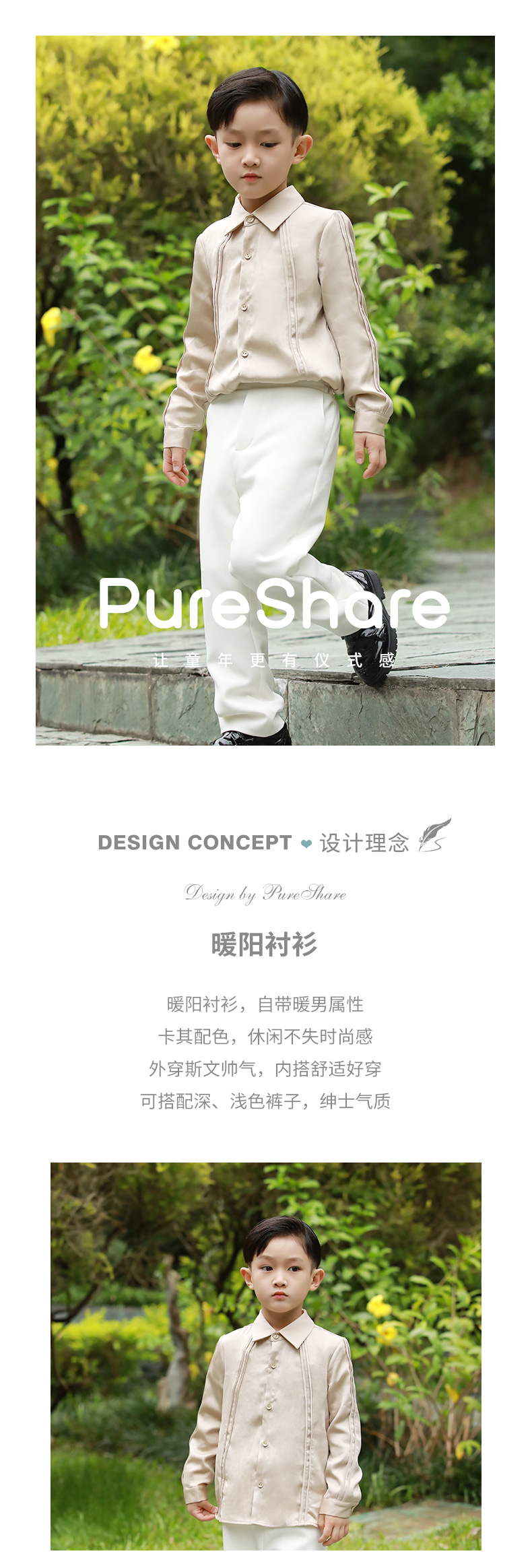 非质量问题不退换哦~pureshare蓬纱馆 男童西服衬衫套装生日宴会走秀款-暖阳衬衫