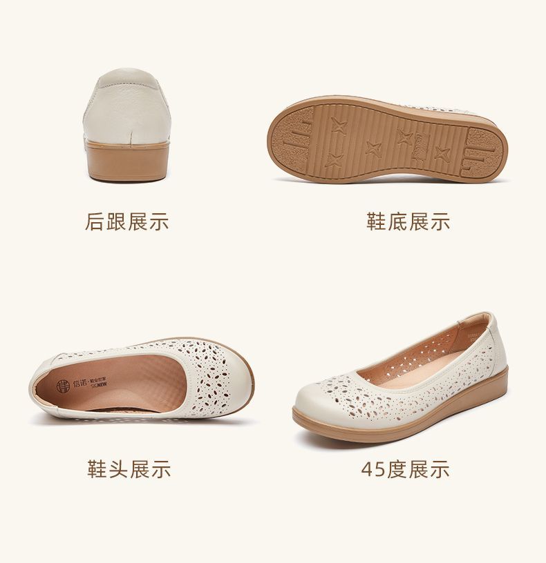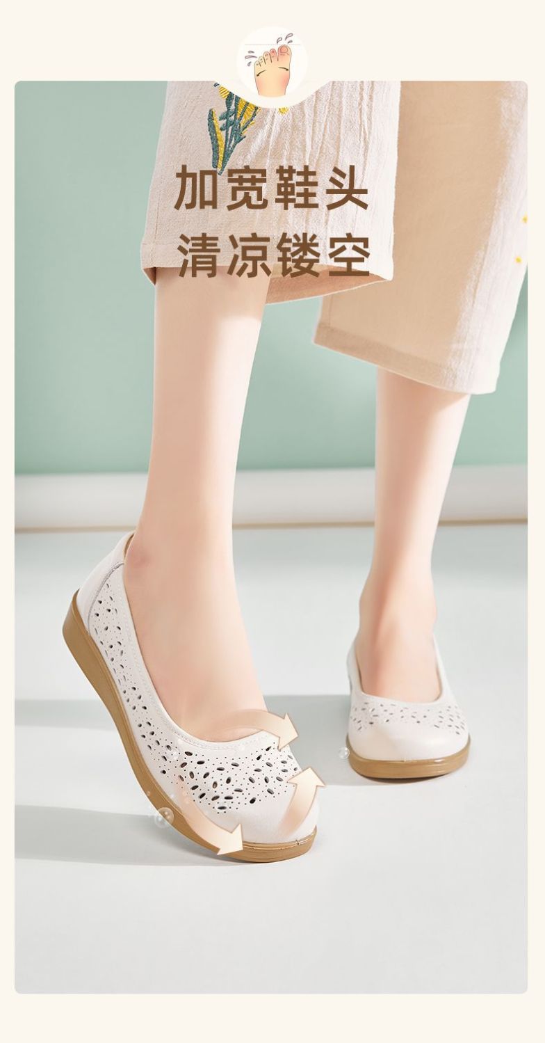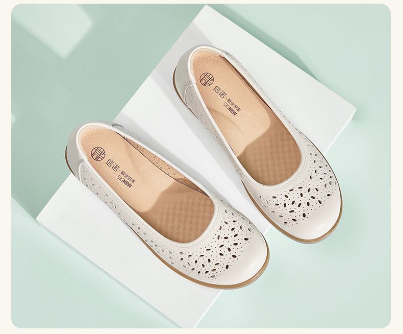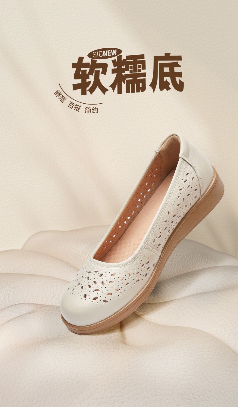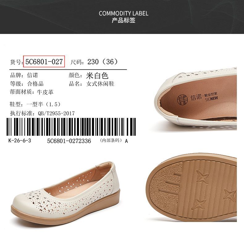 信诺真皮舒适女鞋2025新款夏季洞洞鞋平底镂空单鞋透气妈妈鞋凉鞋5C6801-027