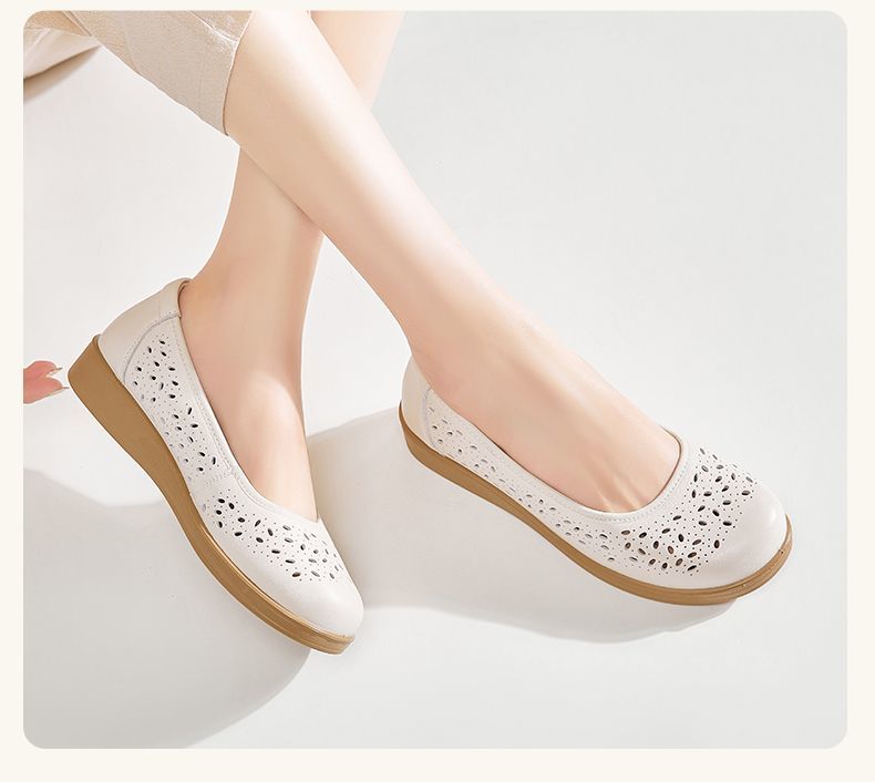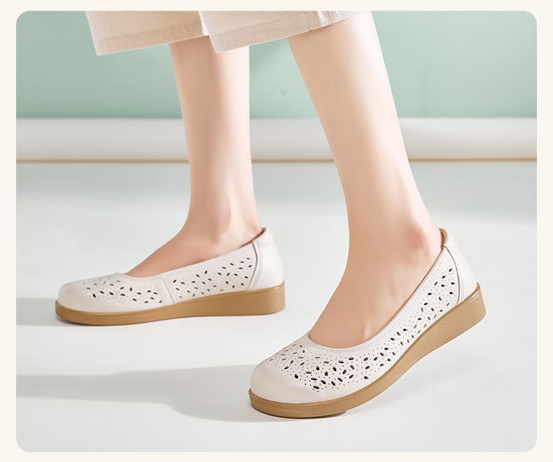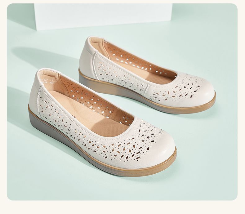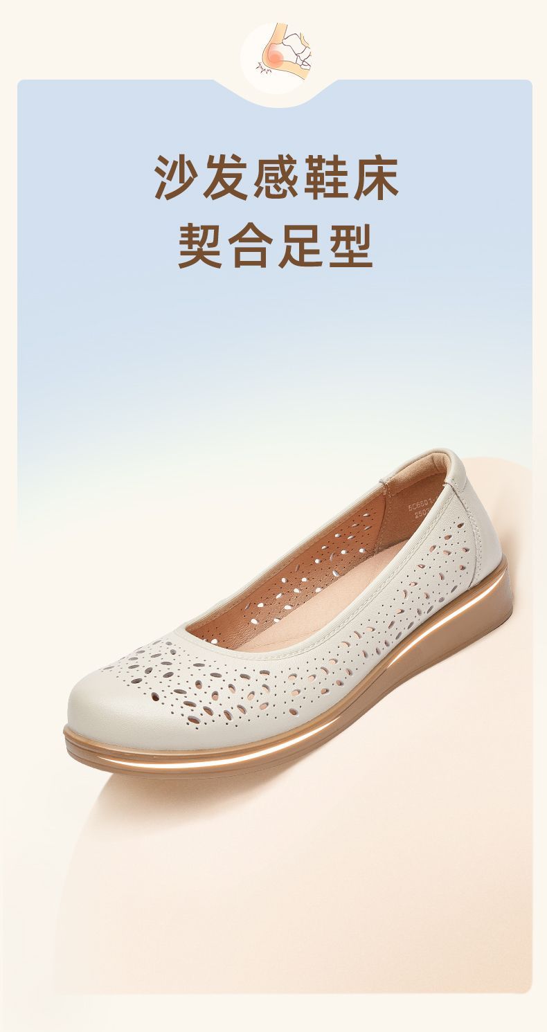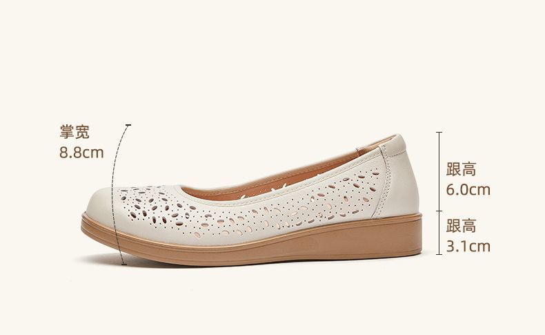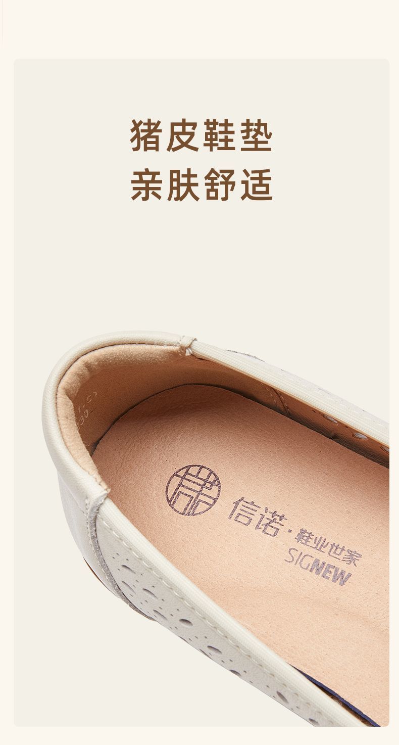 信诺真皮舒适女鞋2025新款夏季洞洞鞋平底镂空单鞋透气妈妈鞋凉鞋5C6801-027