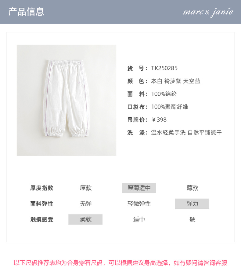 马克珍妮女童排汗透气运动裤儿童裤子束脚裤2025年春夏新款250285