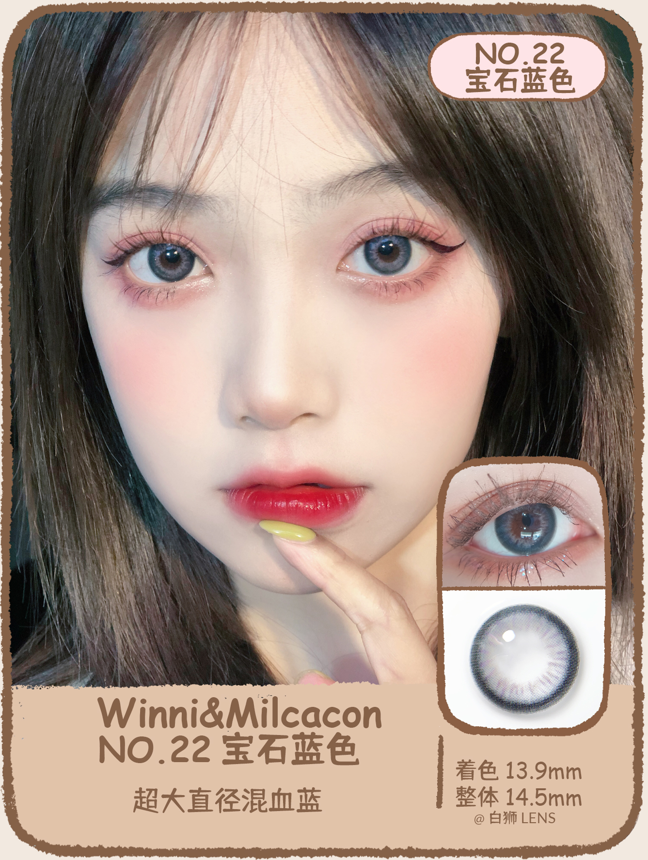 winni&Milcacon旗下 · M22宝石蓝色| 14.5mm白狮参考着色大直径 年抛美瞳