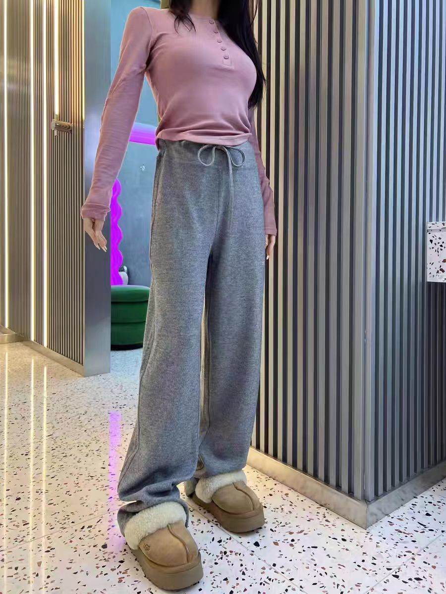 针织宽腰头加抽绳,一整个松弛感拉满,给予腰部舒适的包裹感,还可以凸显身材曲线。