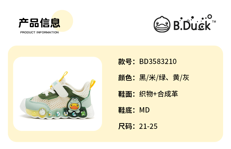 B.Duck小黄鸭童鞋春季儿童休闲鞋21-25 BD3583210