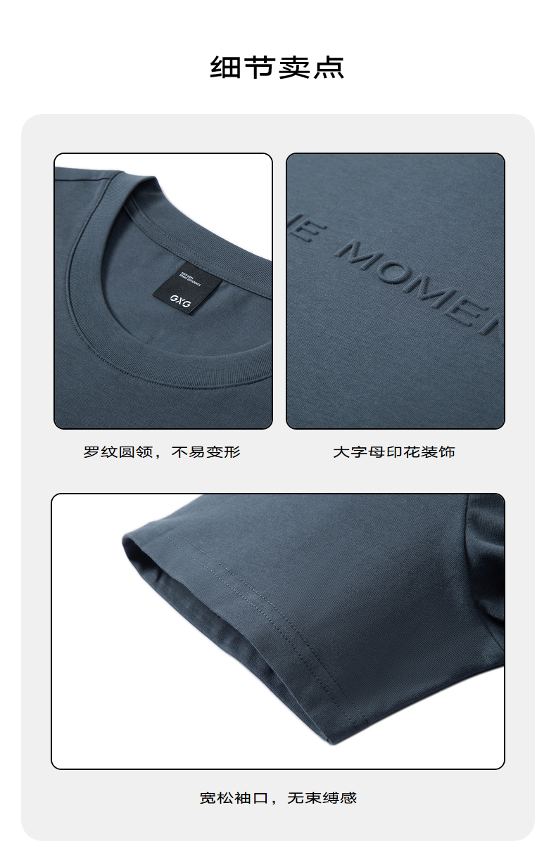 GXG男装 深蓝色字母印花休闲宽松圆领短袖T恤男生上衣 24夏季热卖