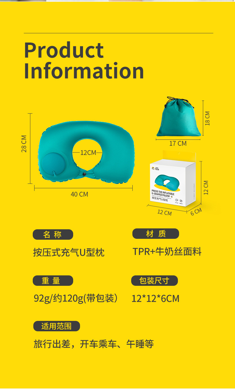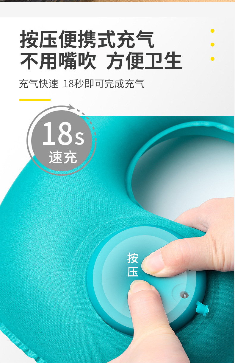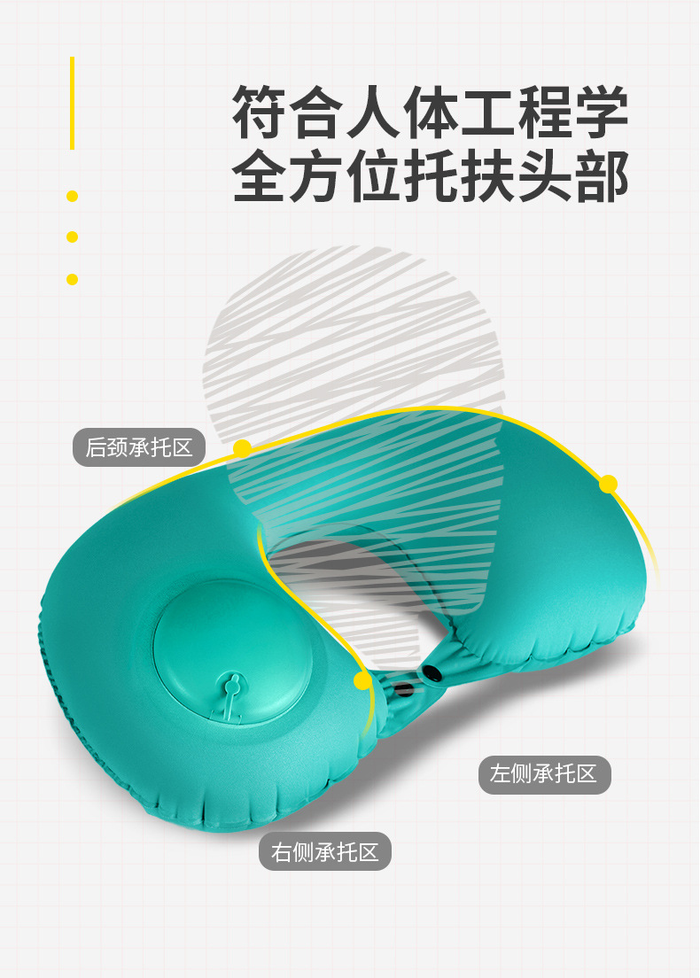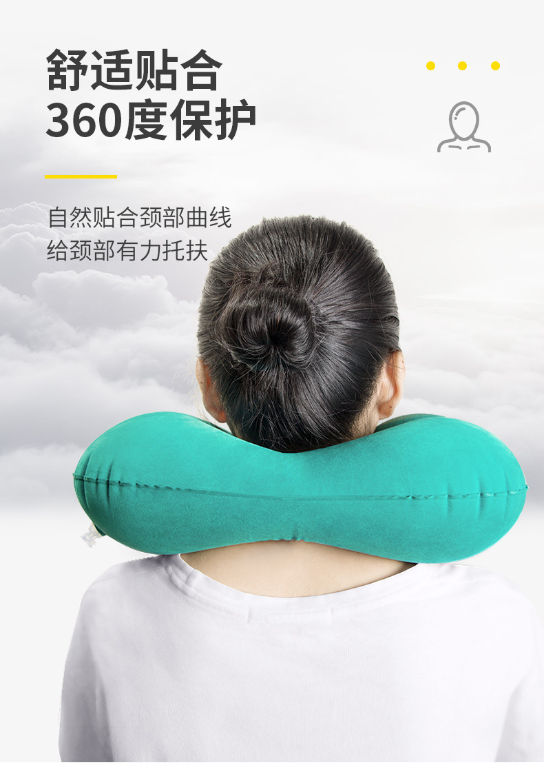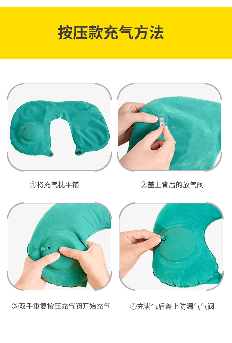 「礼盒装!两款配色」脖子u型枕充气u型枕女护颈椎枕旅行便携式居家布艺手动按压充气枕飞机枕头