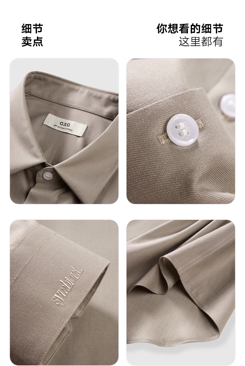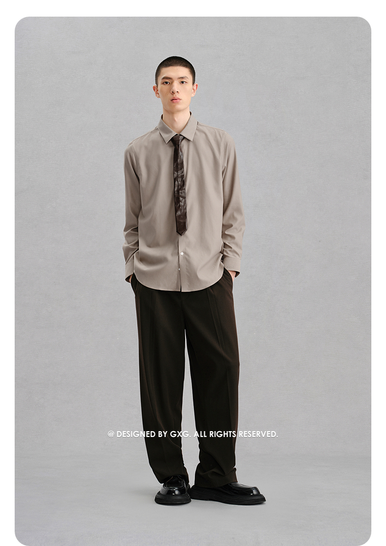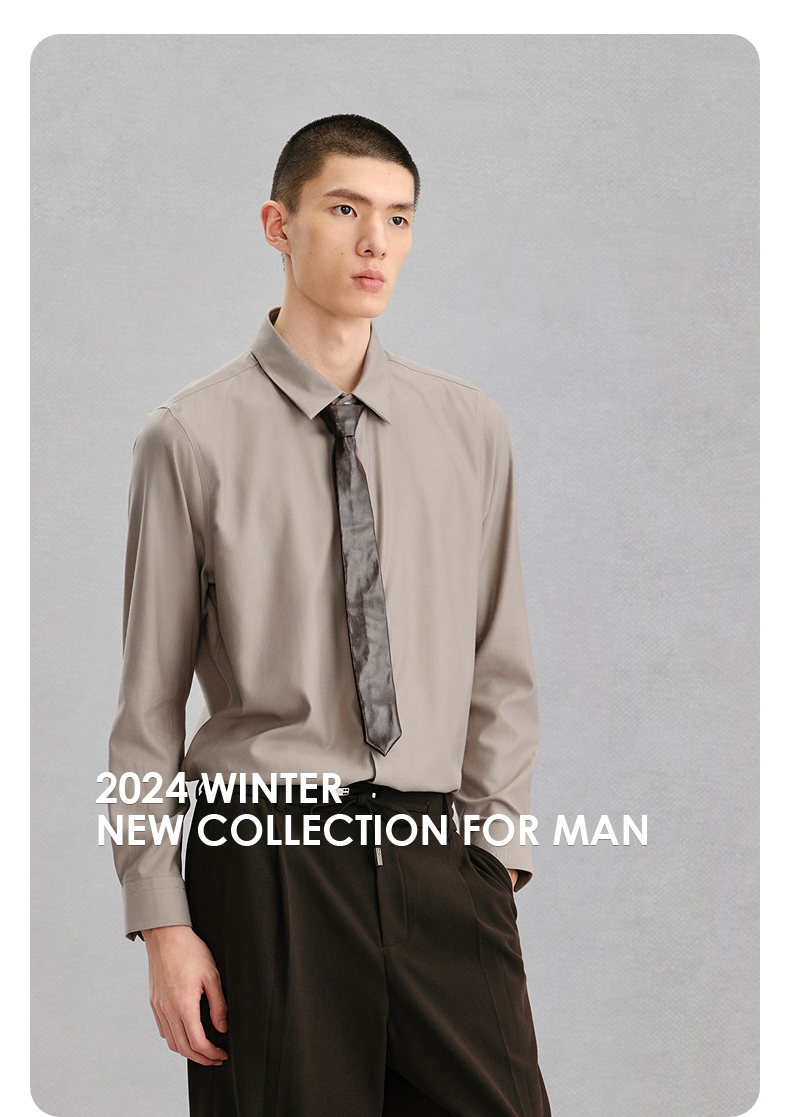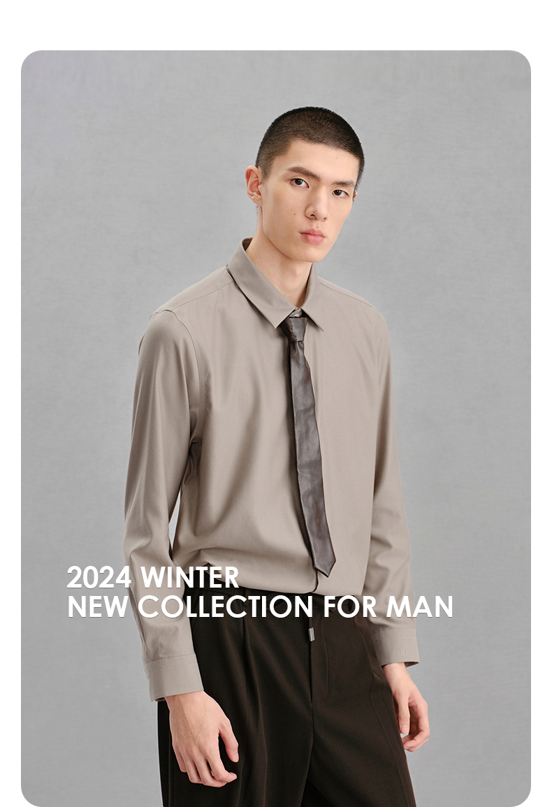 GXG男装 咖色质感面料免烫衬衫24年冬季热卖G24X034070