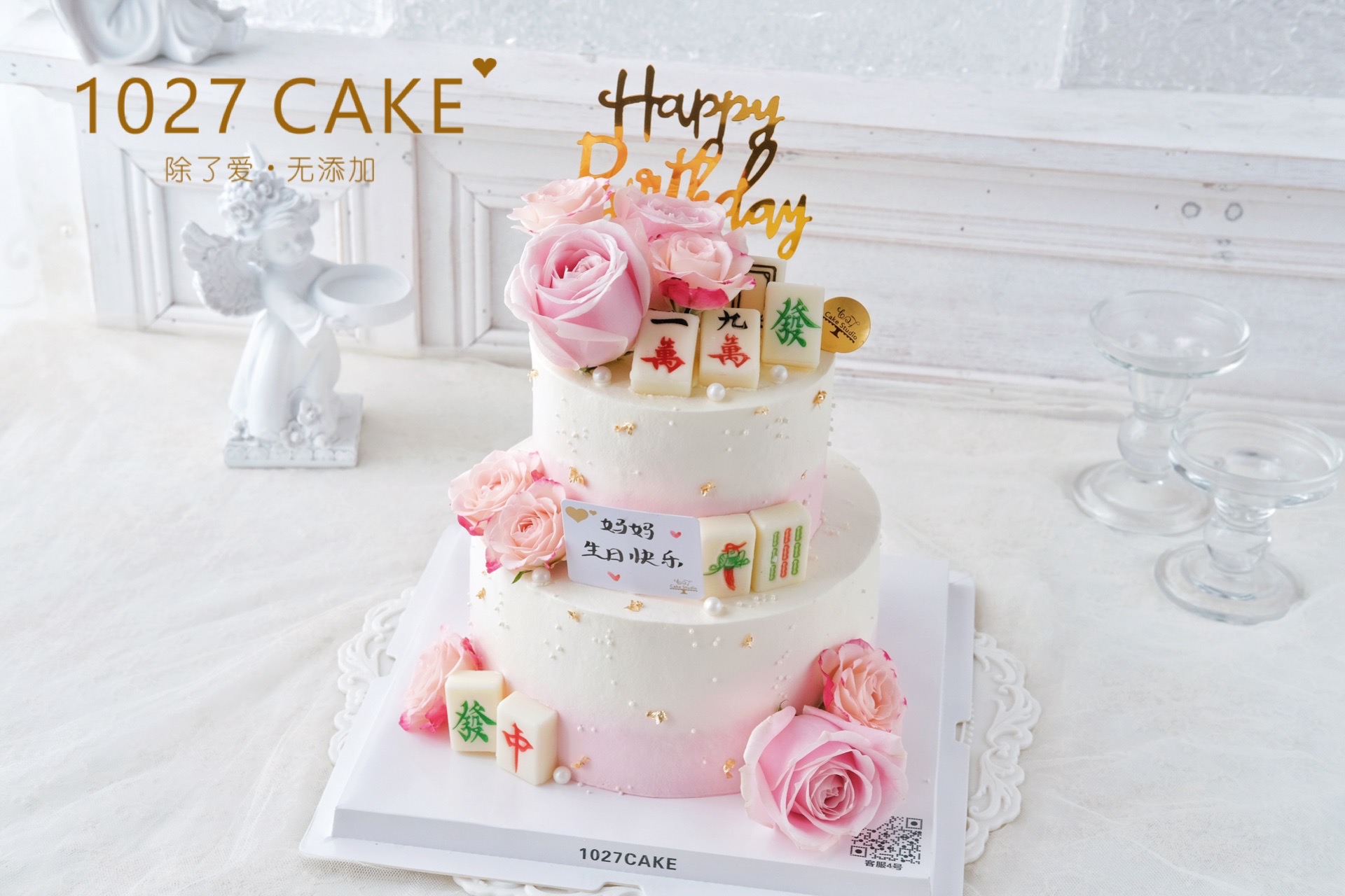 1027CAKE | 双层 麻将 鲜花 长辈蛋糕