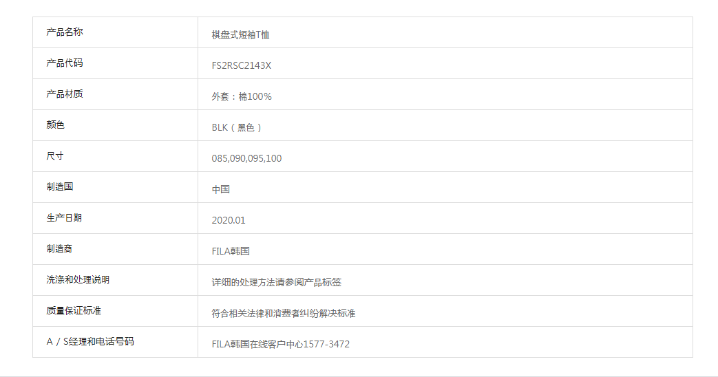 FILA斐乐韩国棋盘式短袖T恤FS2RSC2143X_BLKJPY带授权招加盟代理