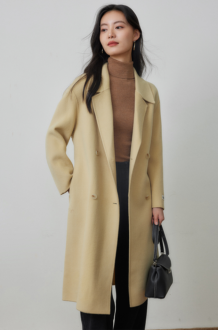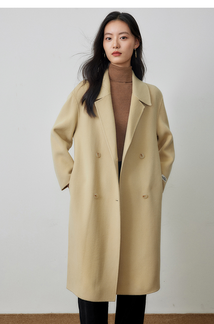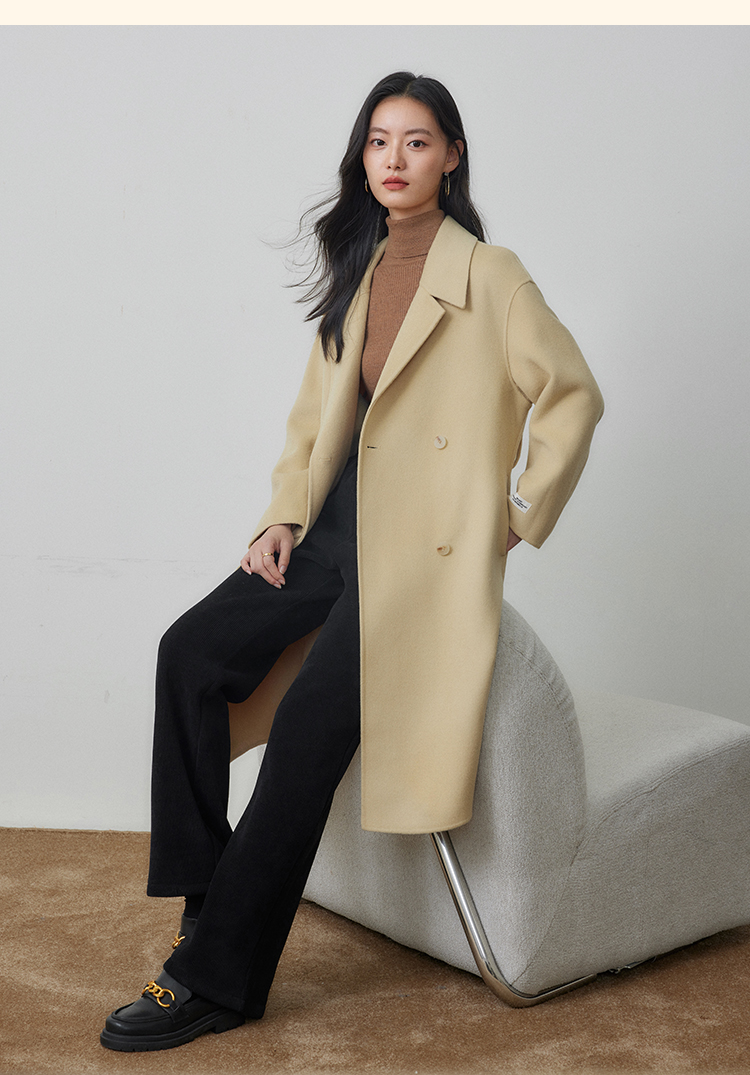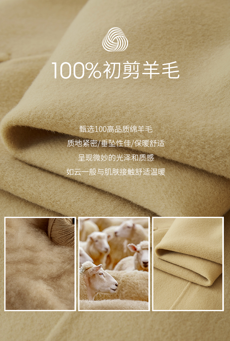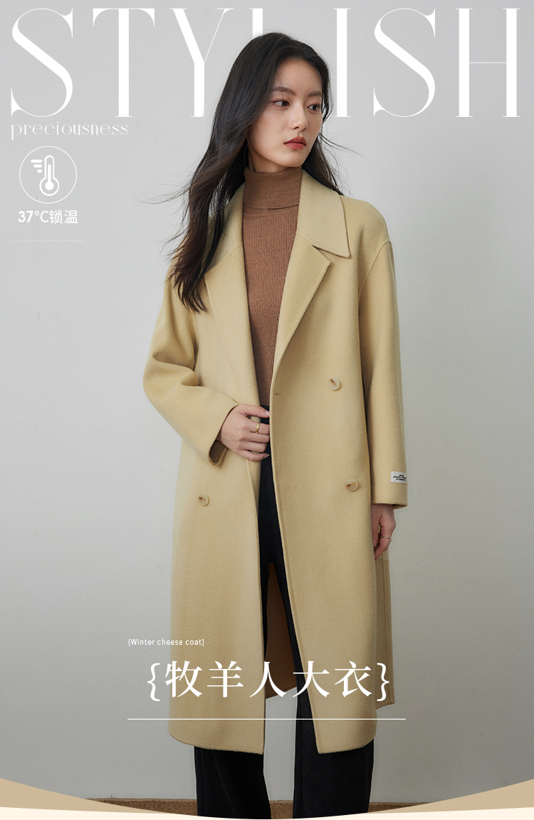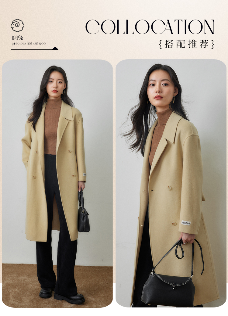 【年终特卖】熙世界80支100%初剪羊毛大衣女秋冬双面羊绒毛呢外套