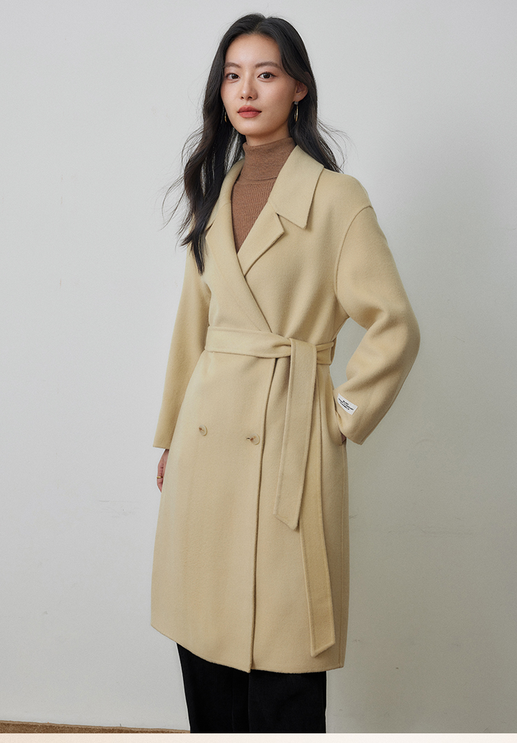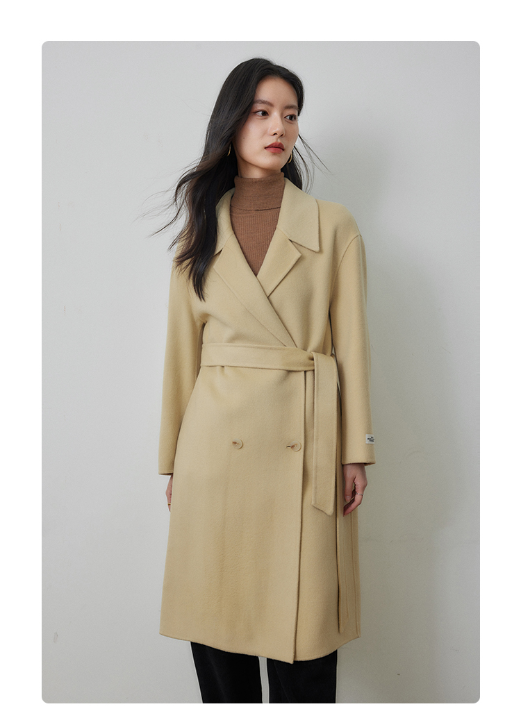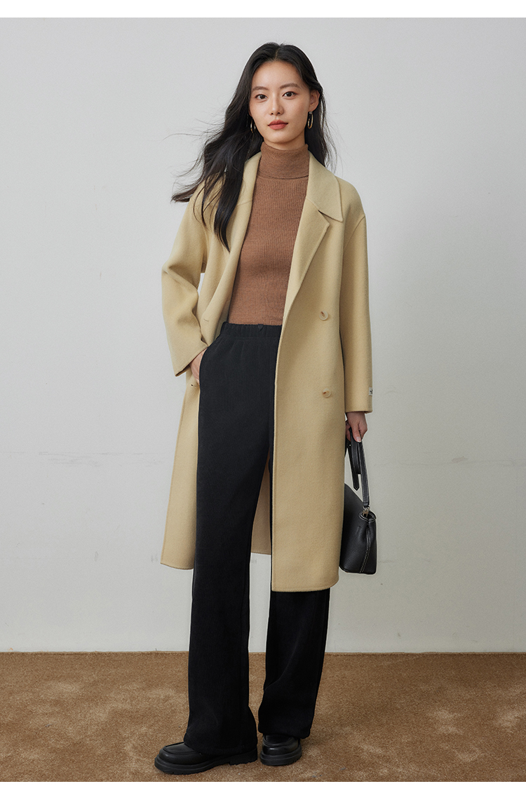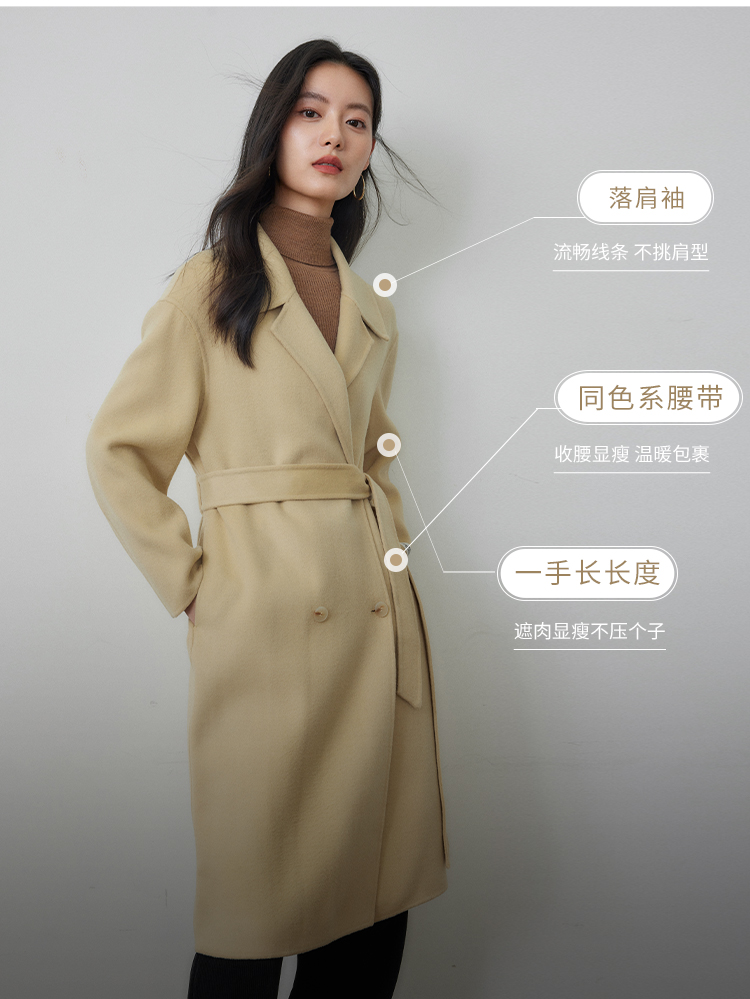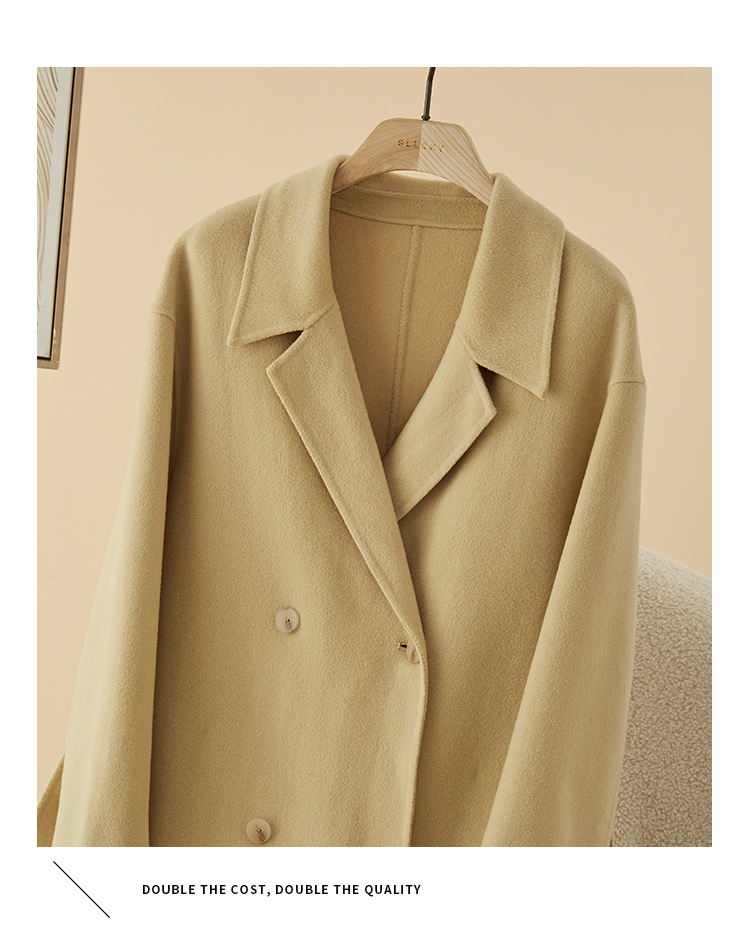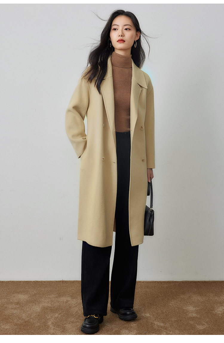 【年终特卖】熙世界80支100%初剪羊毛大衣女秋冬双面羊绒毛呢外套