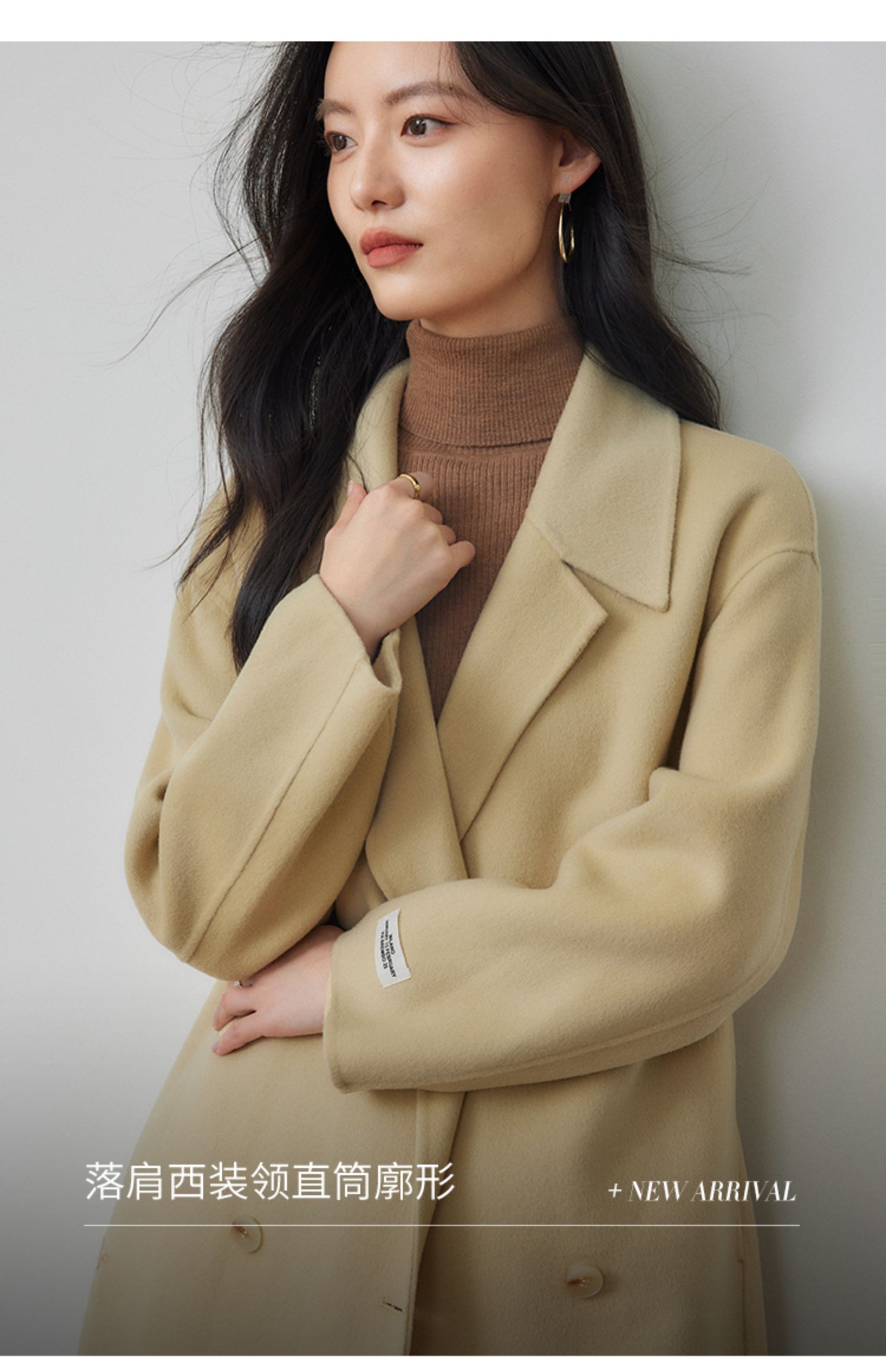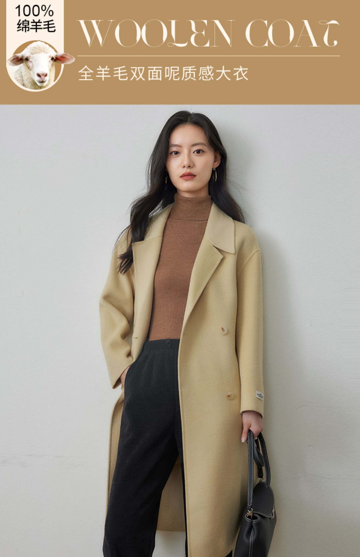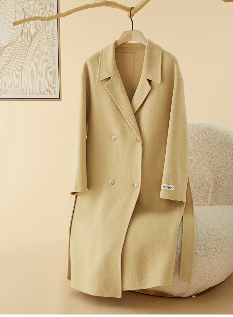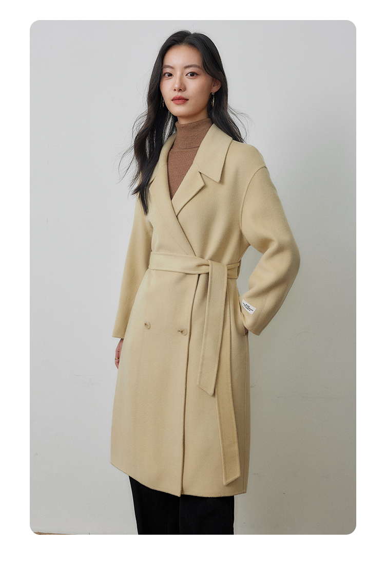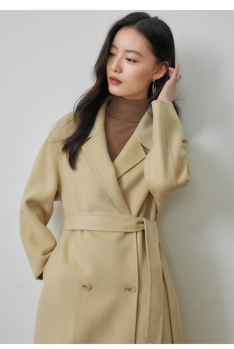 【年终特卖】熙世界80支100%初剪羊毛大衣女秋冬双面羊绒毛呢外套