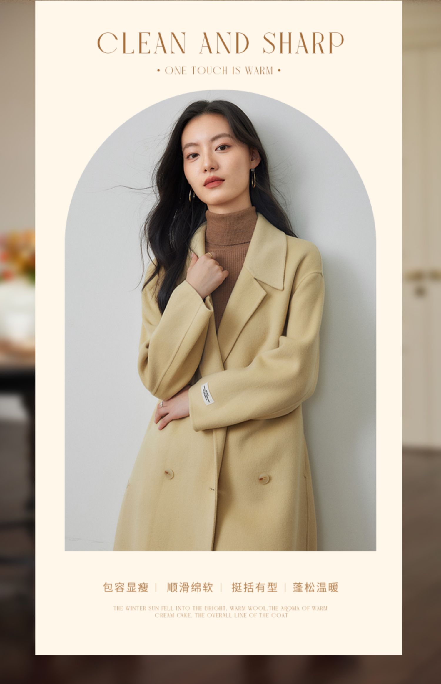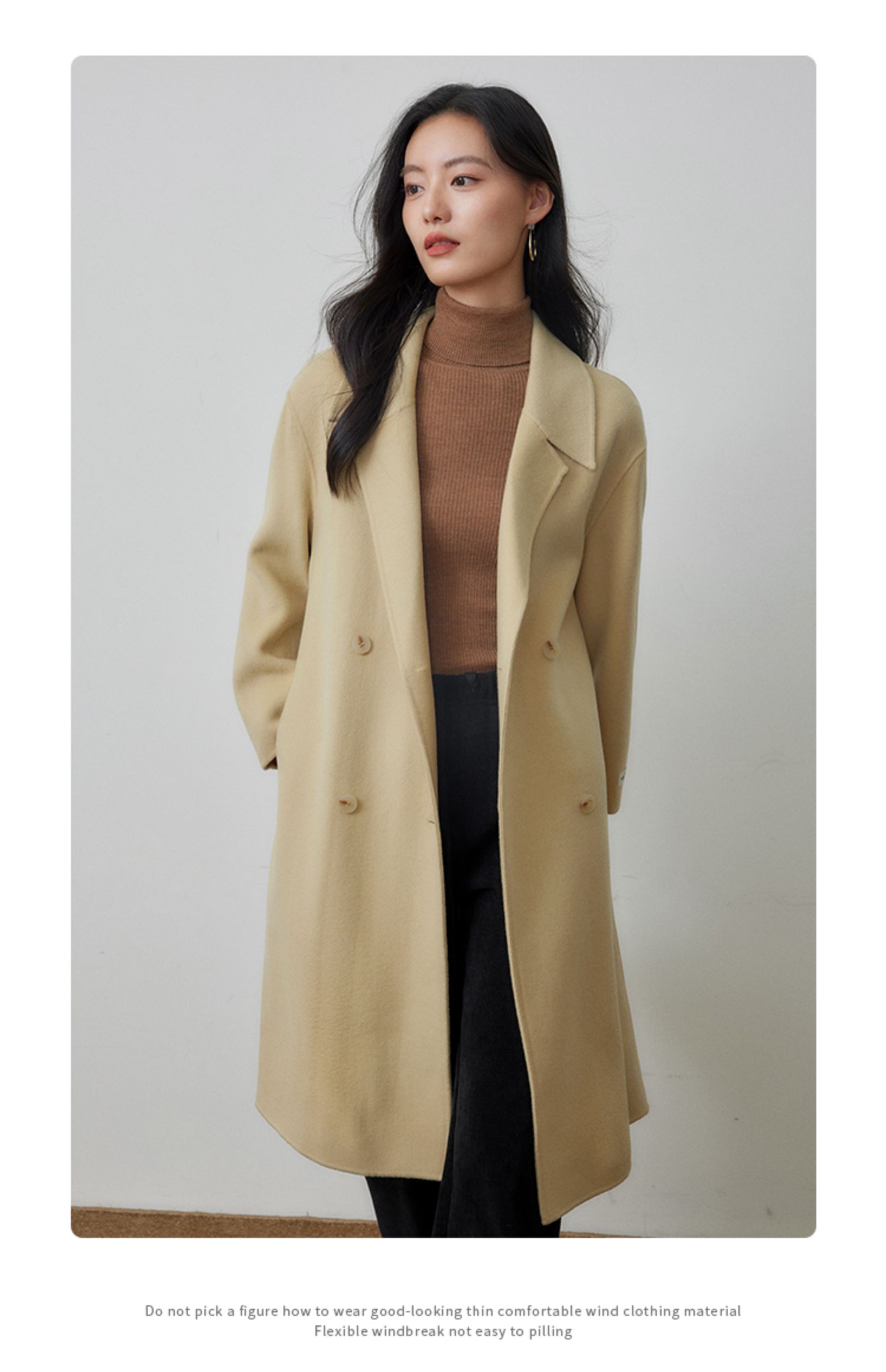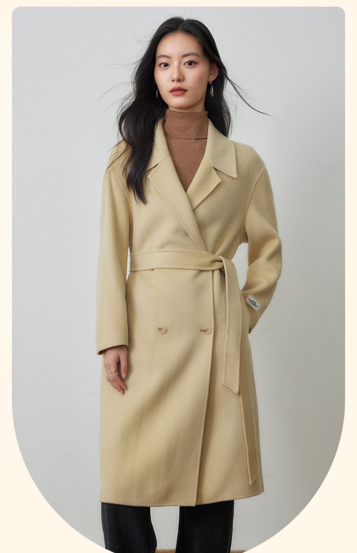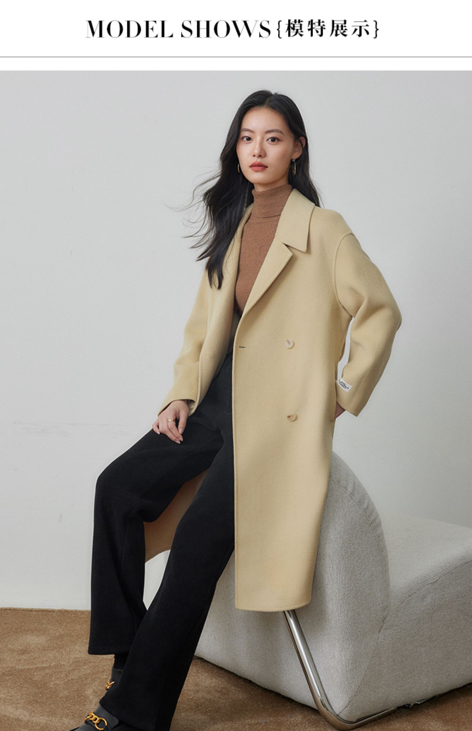 【年终特卖】熙世界80支100%初剪羊毛大衣女秋冬双面羊绒毛呢外套