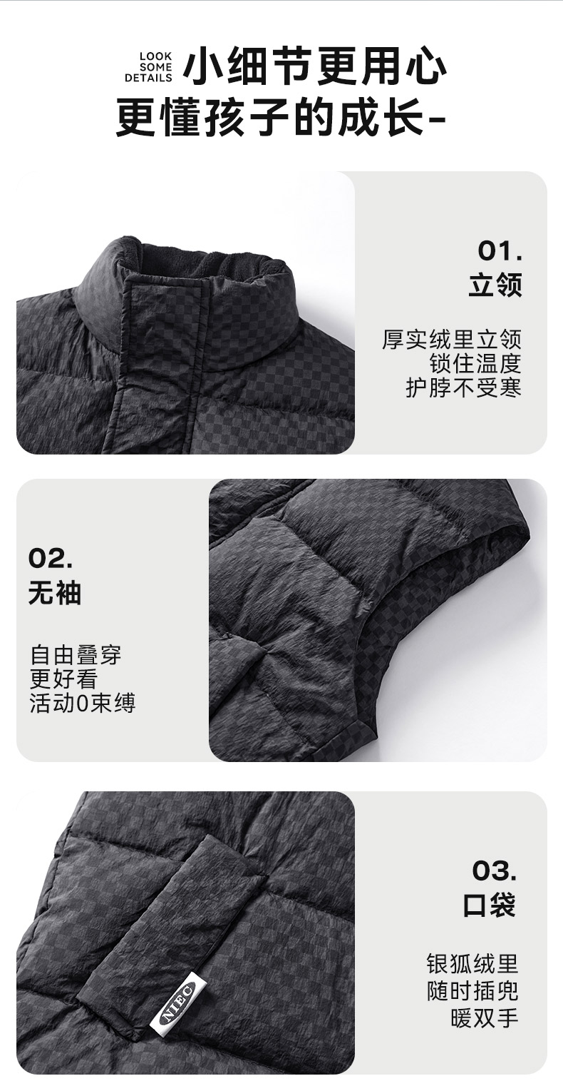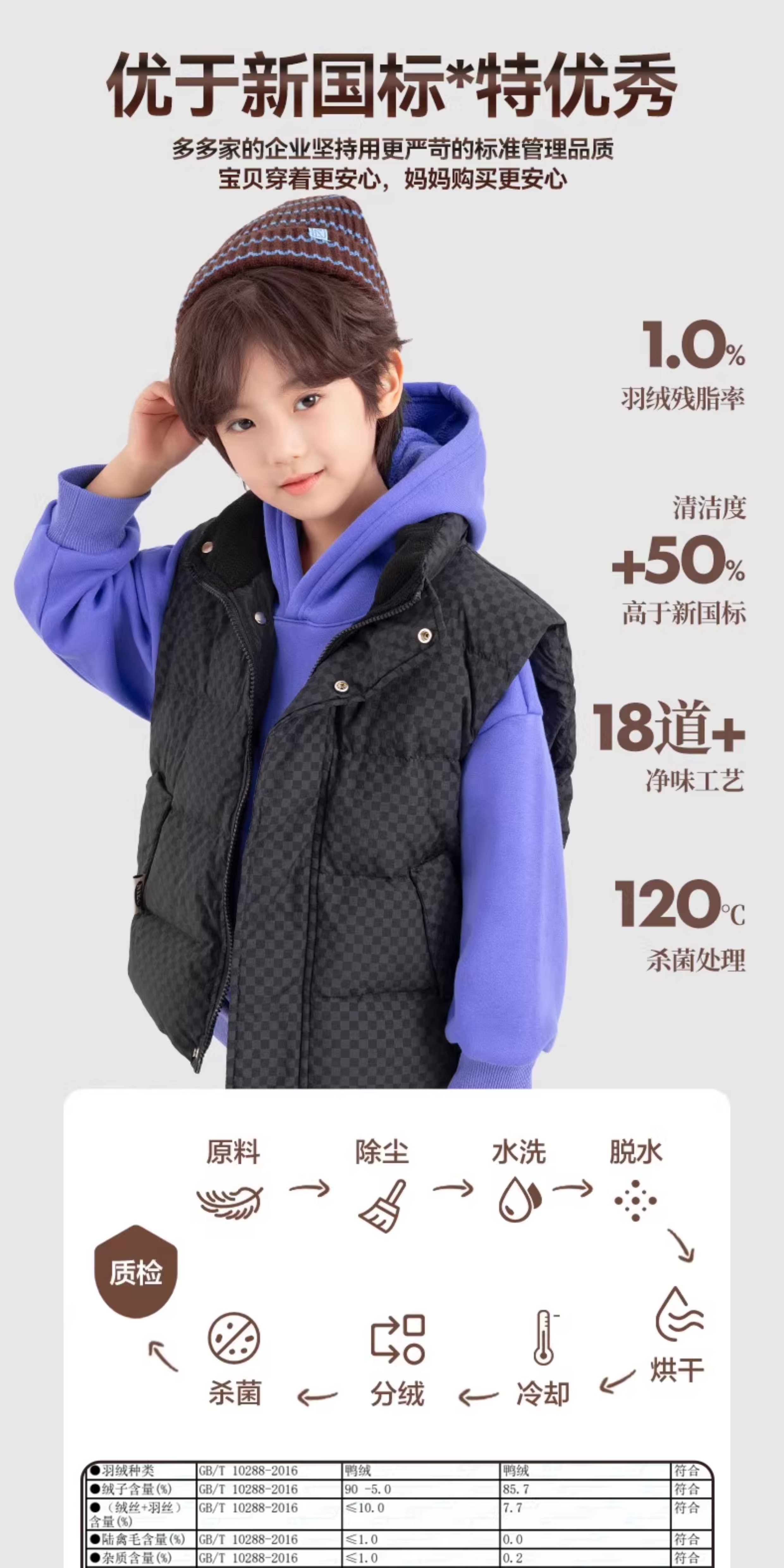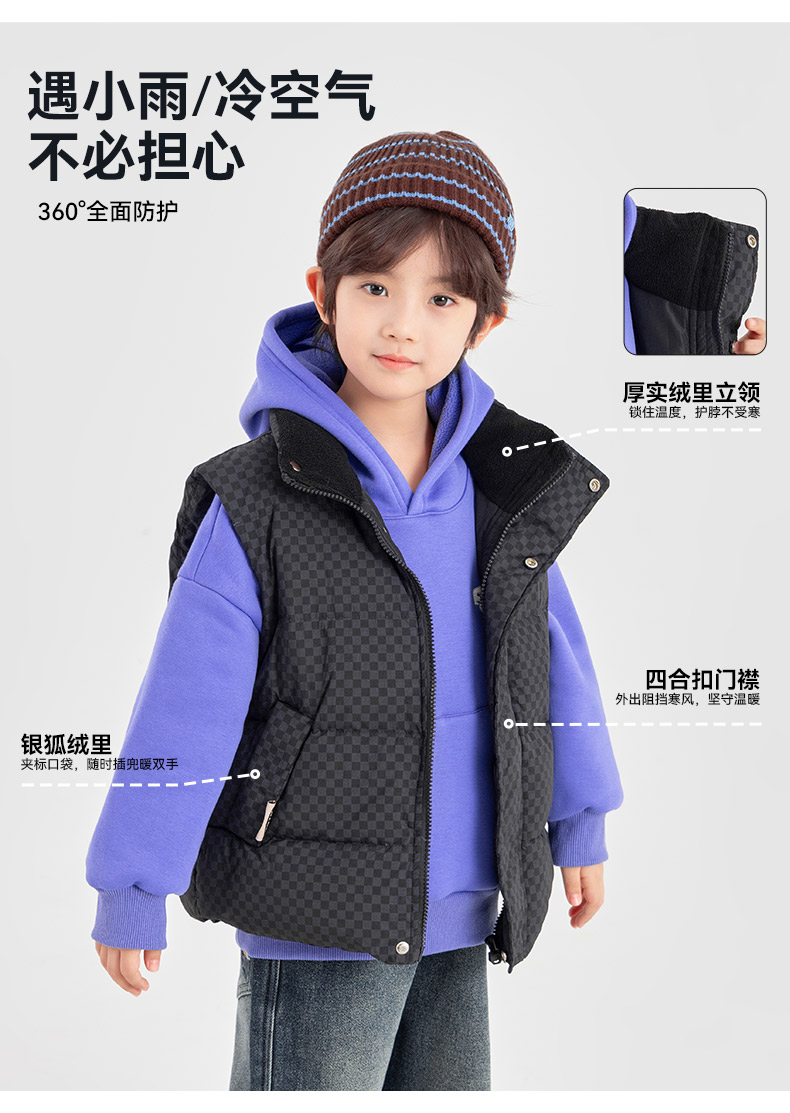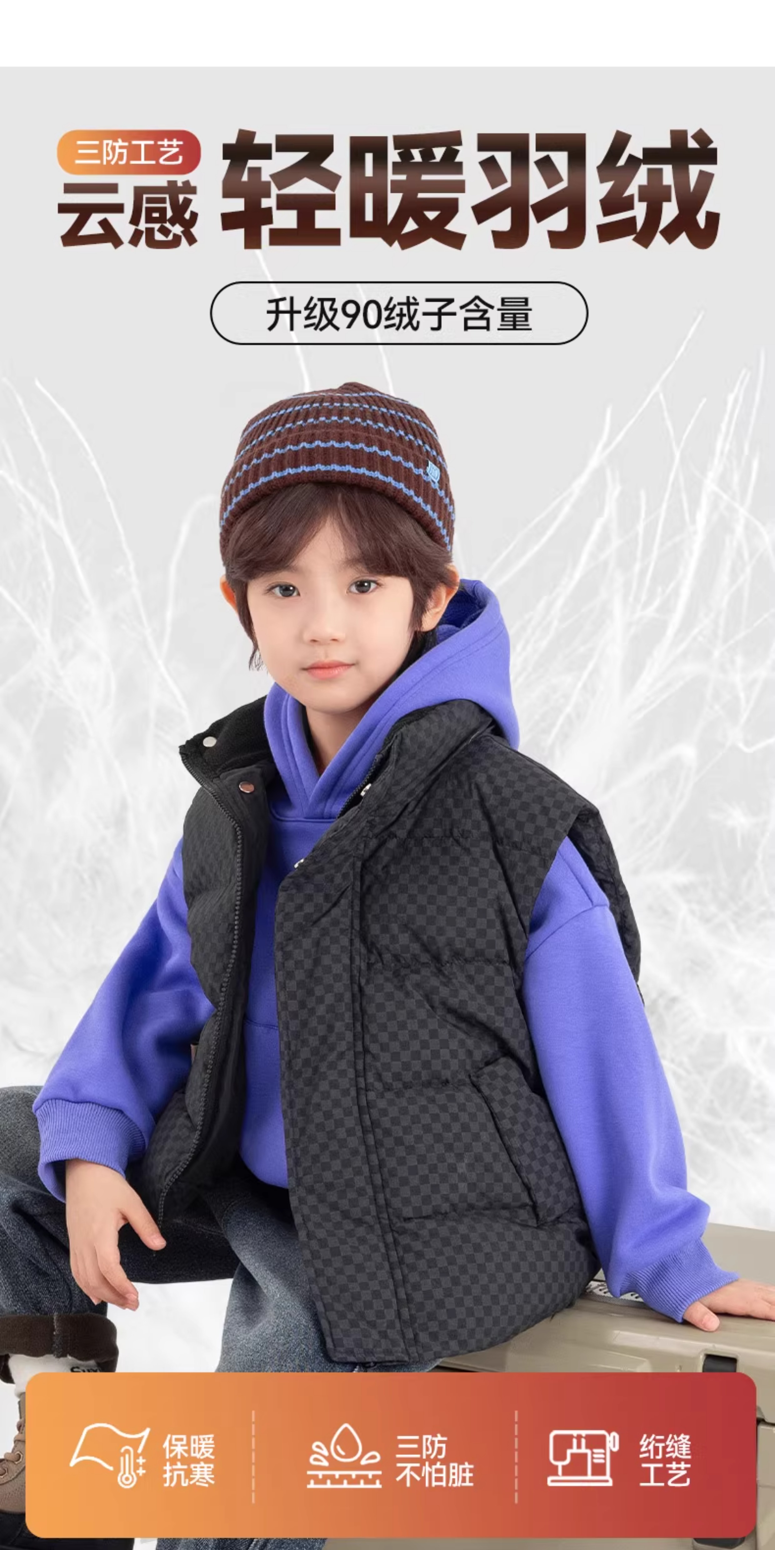 【件件底价,童装双倍积分】多多家男童羽绒马甲三防2025秋冬新款冬装儿童加厚背心外穿中大童10904