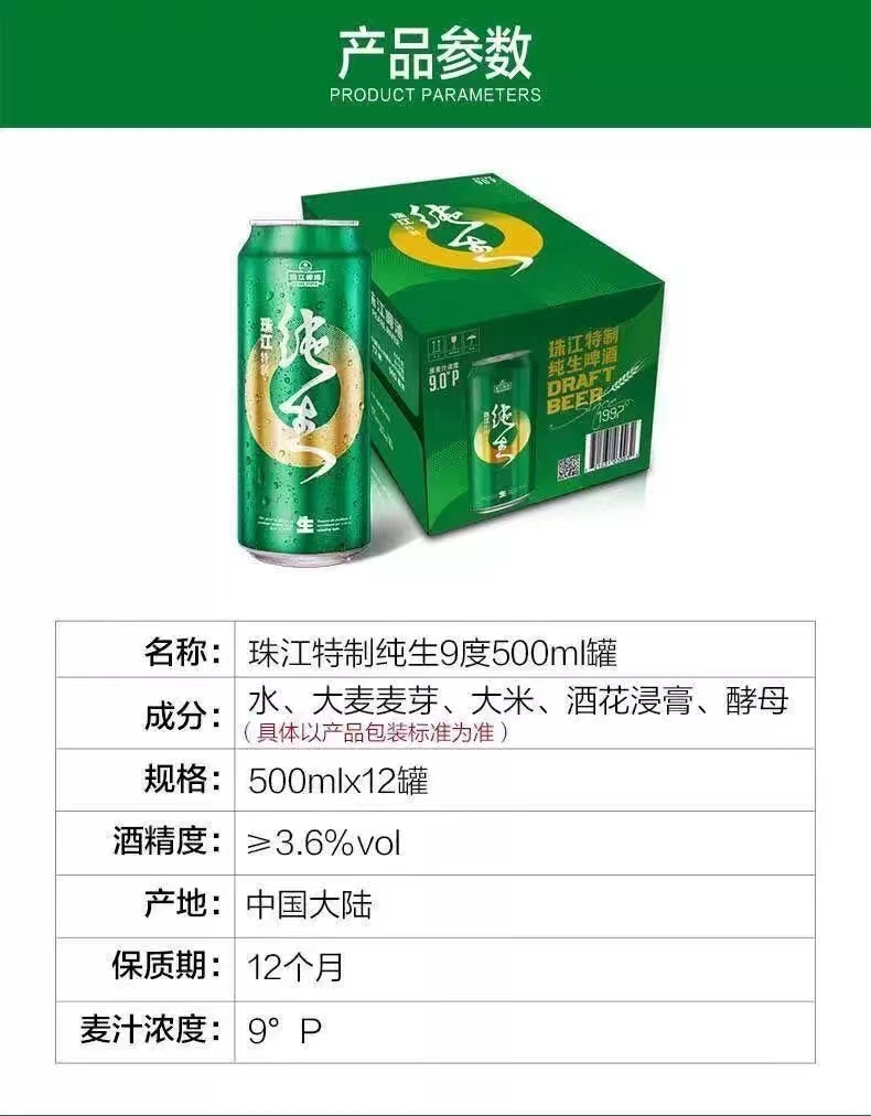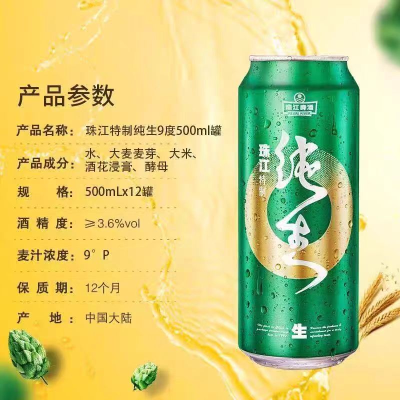 【整箱】珠江啤酒 特制纯生9度 500ml*12听