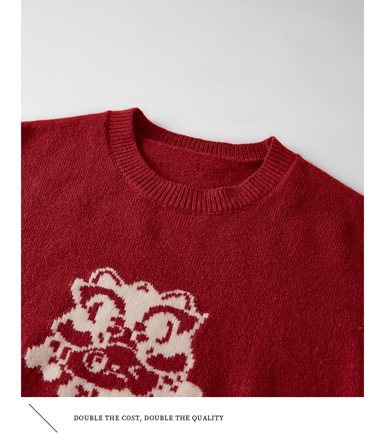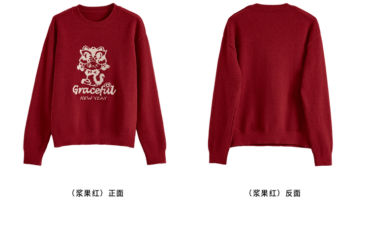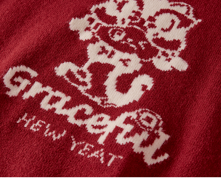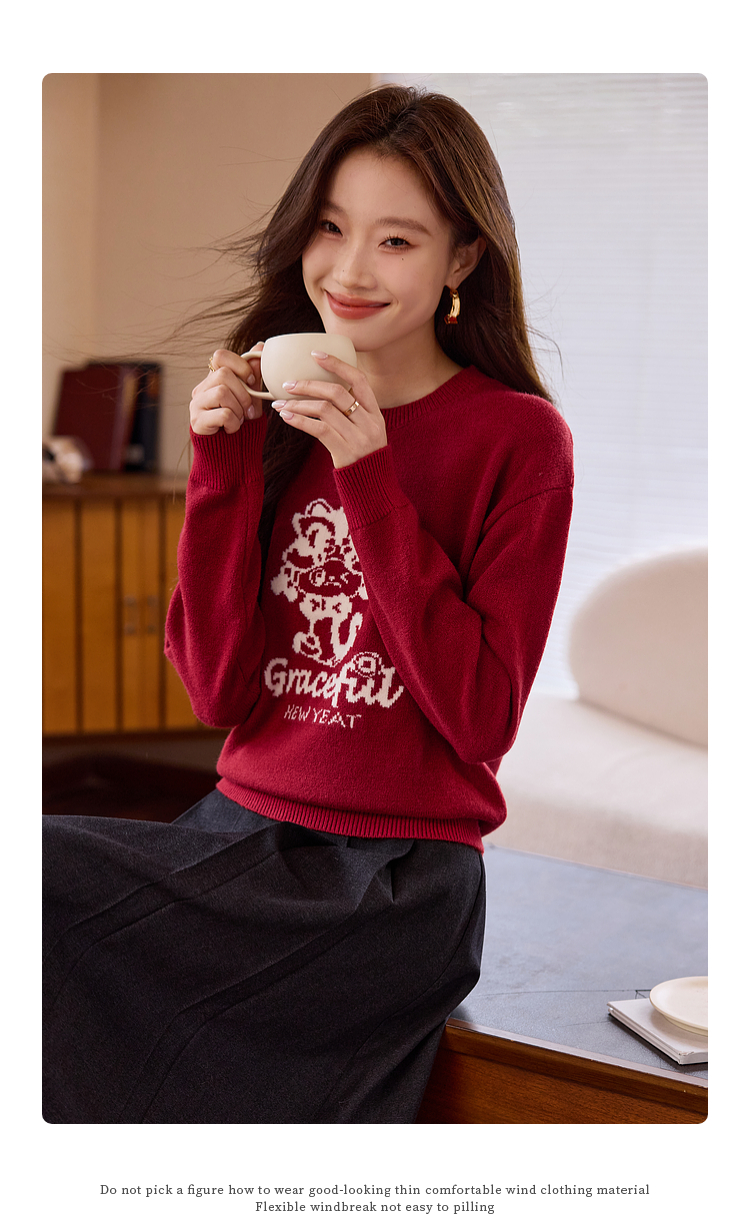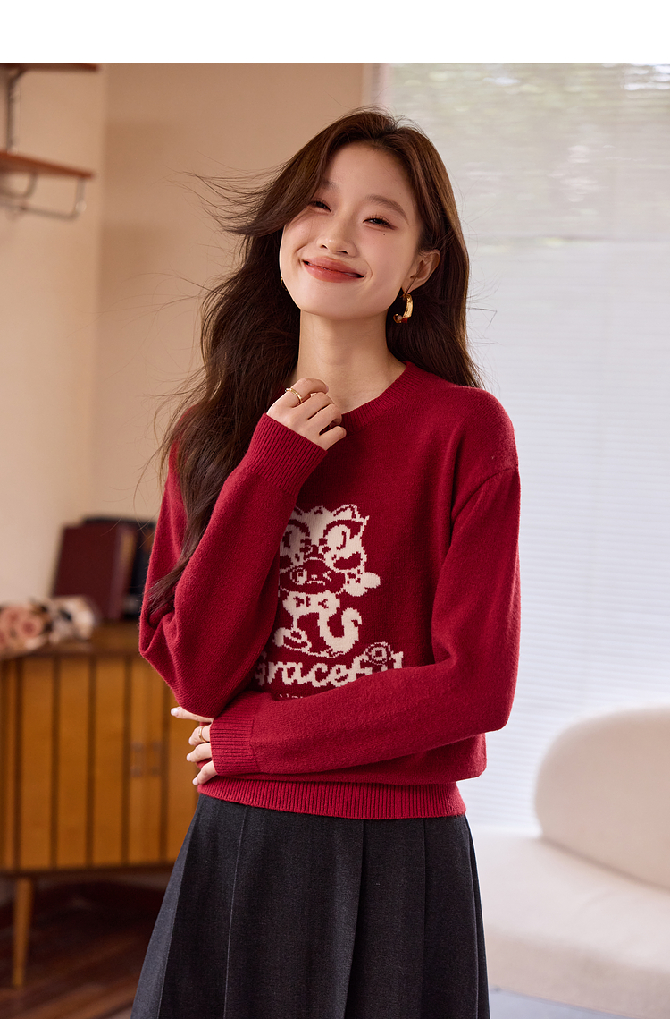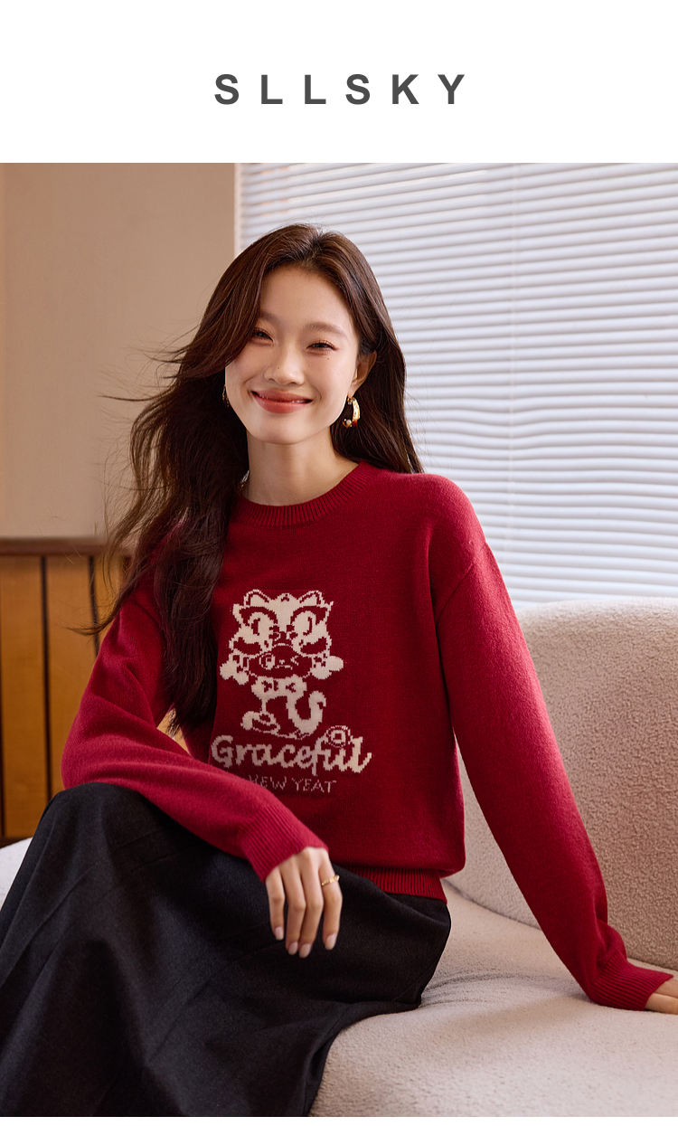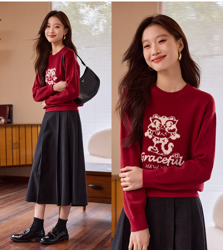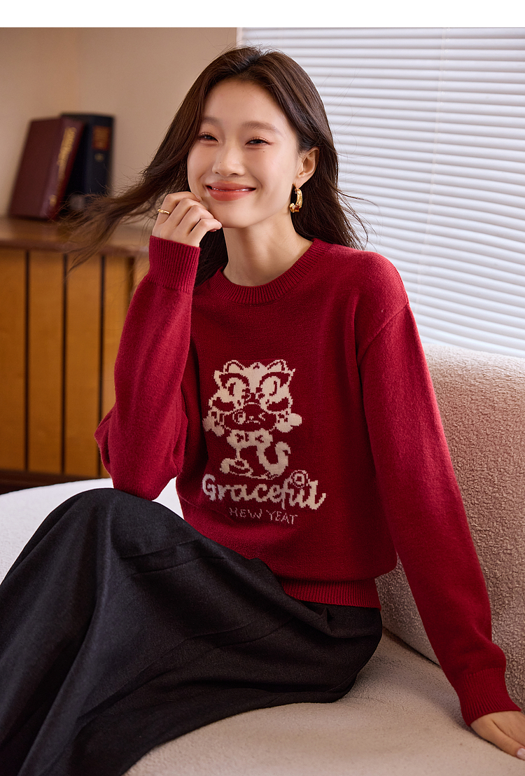 【年货节】熙世界蛇年毛衣女红色本命年生肖提花圆领打底针织衫2025秋冬款