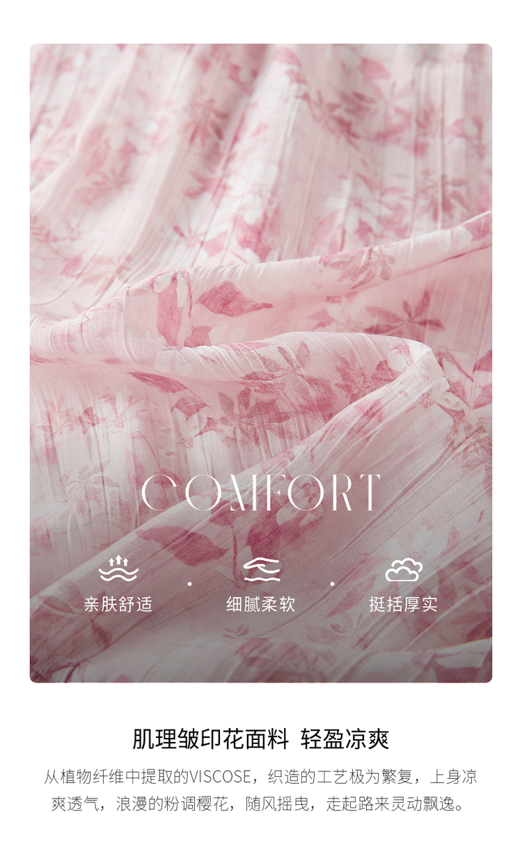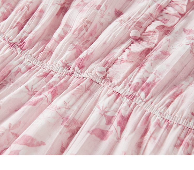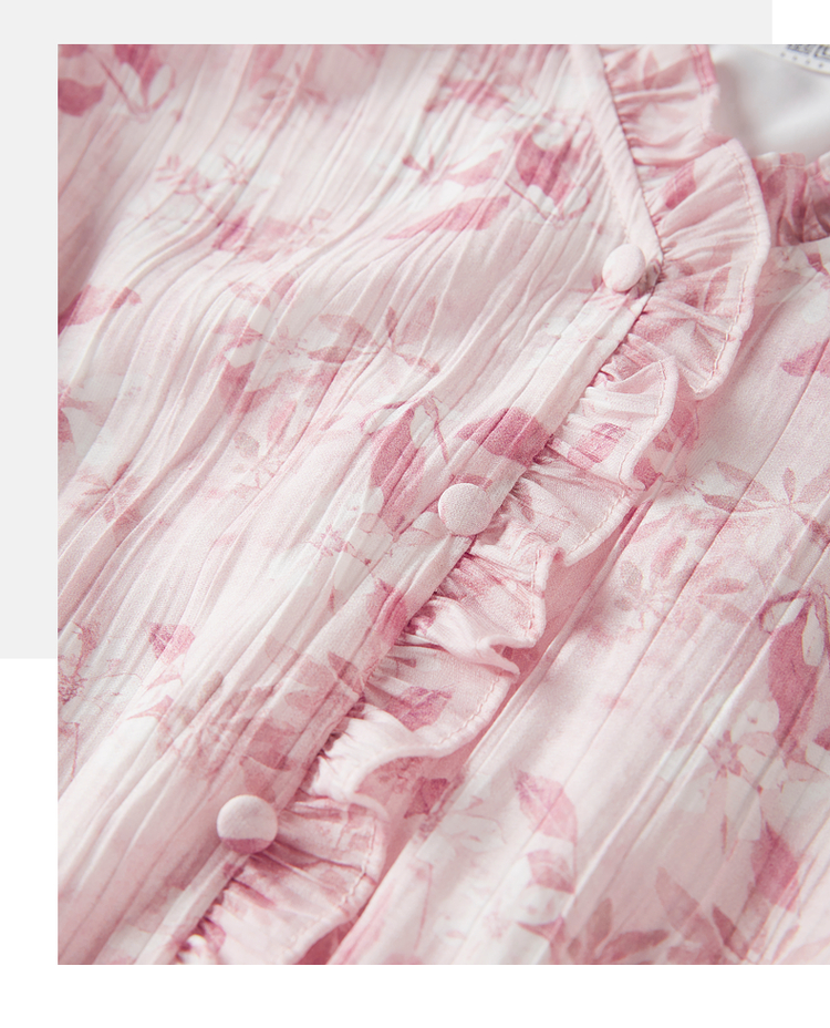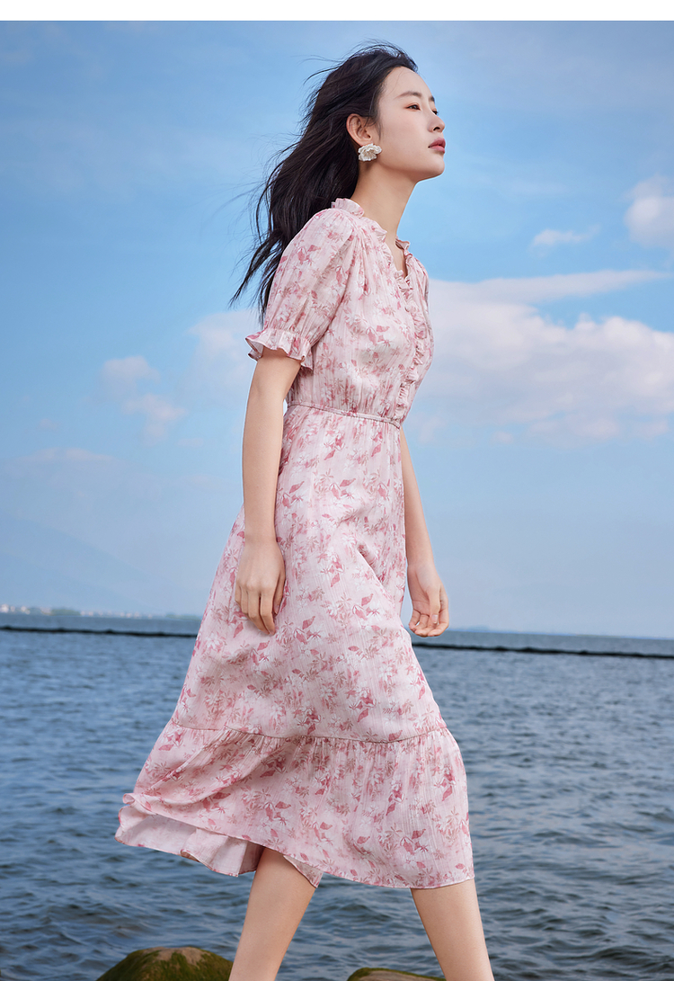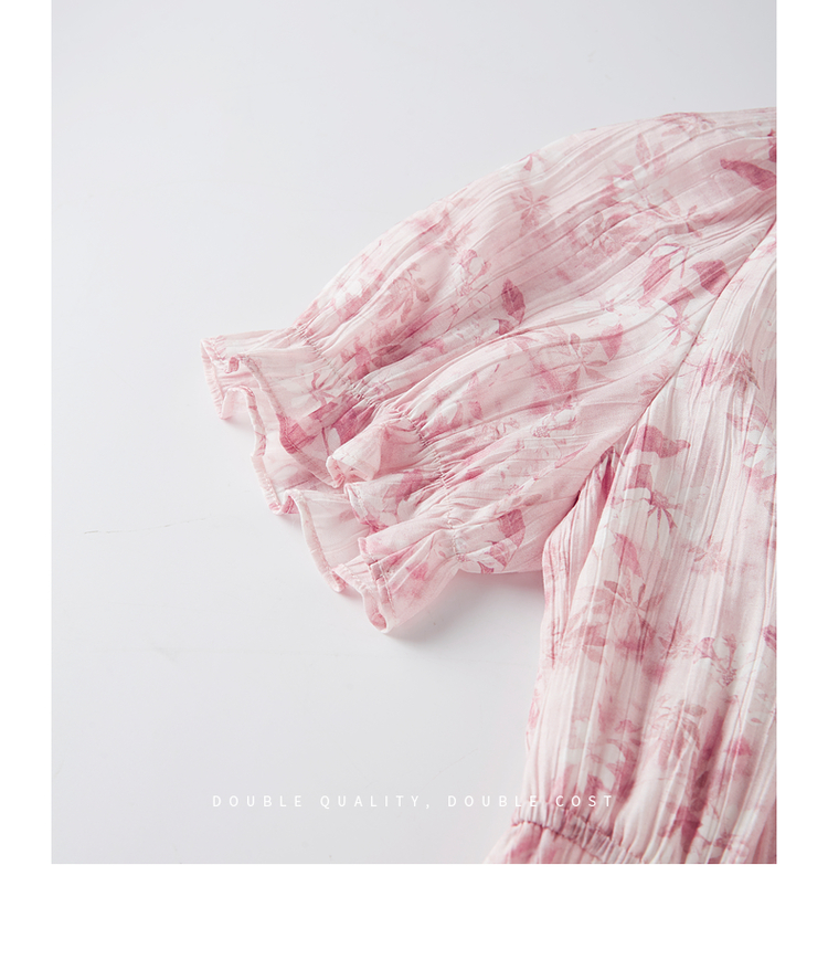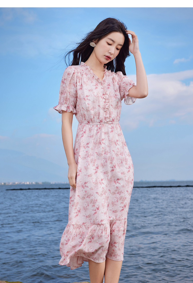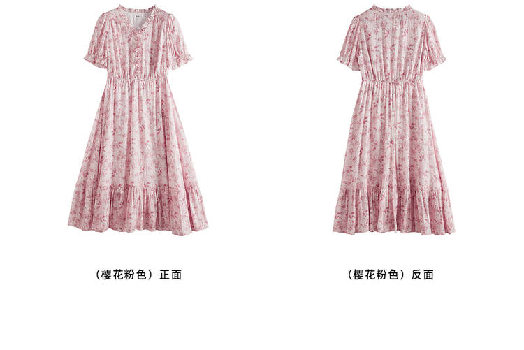 【专属特价】熙世界裙子夏季女2025新款法式V领泡泡袖荷叶边a字碎花连衣裙绝美