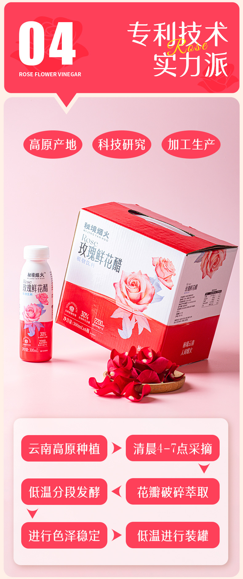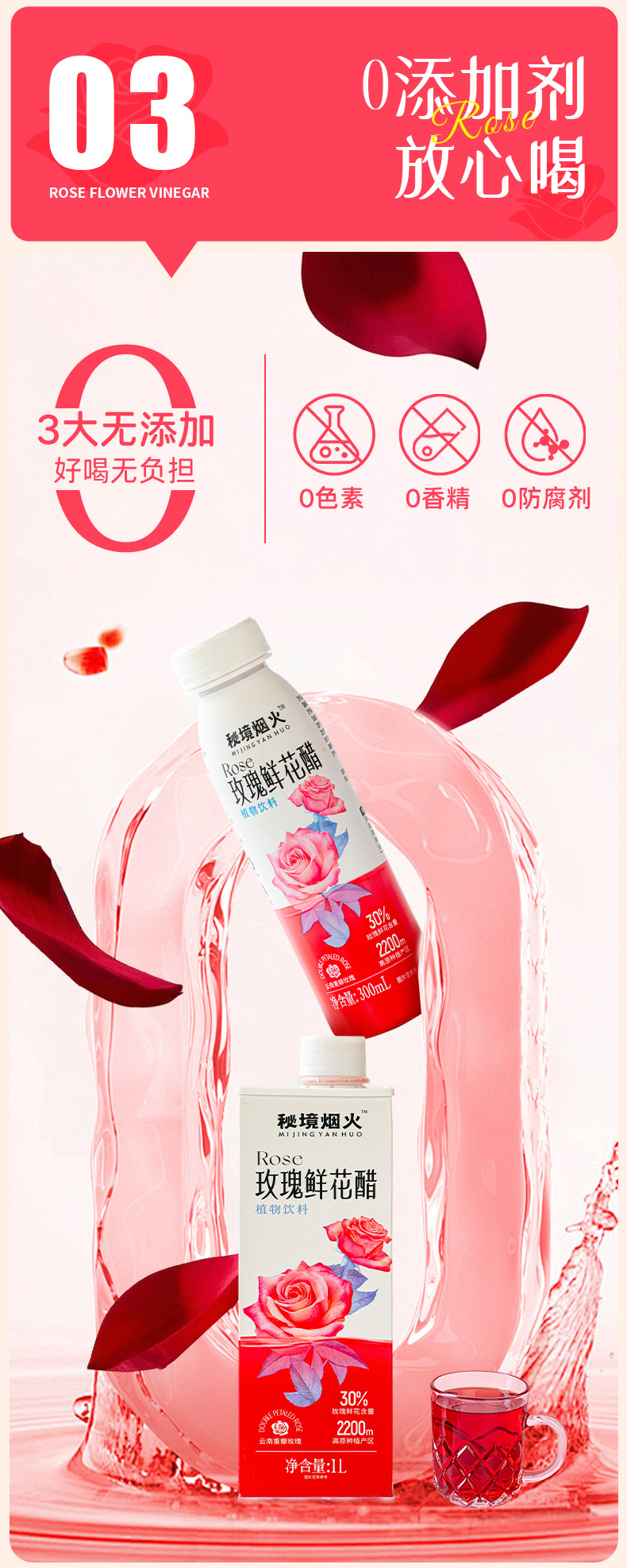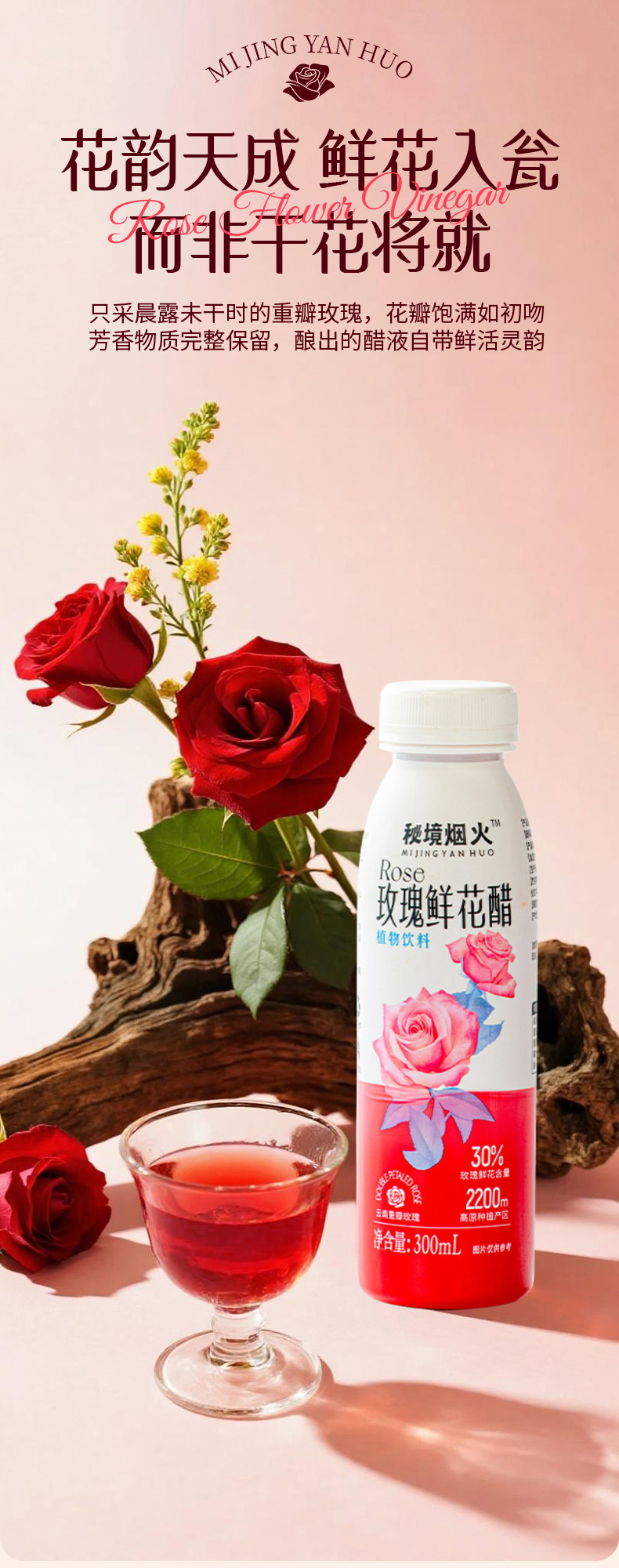 秘境烟火 玫瑰鲜花醋300ml/瓶 植物饮料 云南特产 酸味柔和 无涩喉感 72小时发货