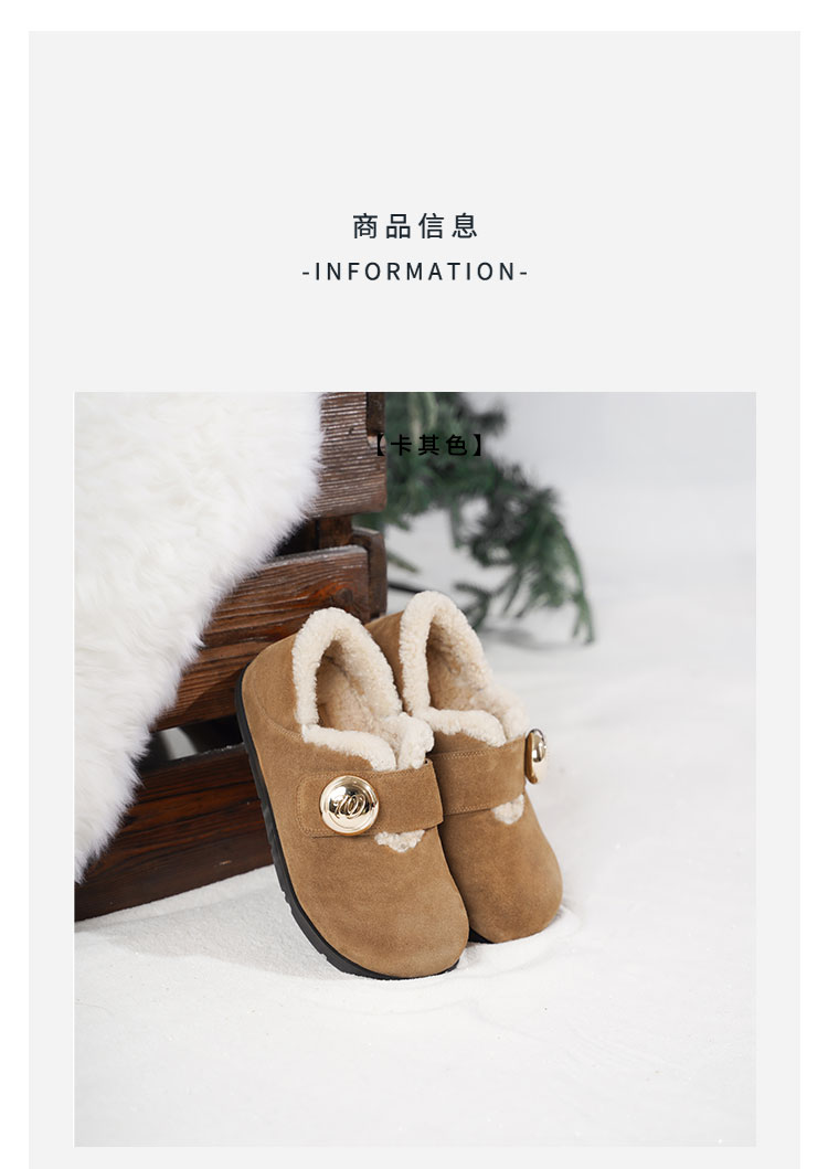 Westory2025年冬季平底圆头勃肯鞋内里加厚羊毛深口单鞋毛毛鞋W25DM86311