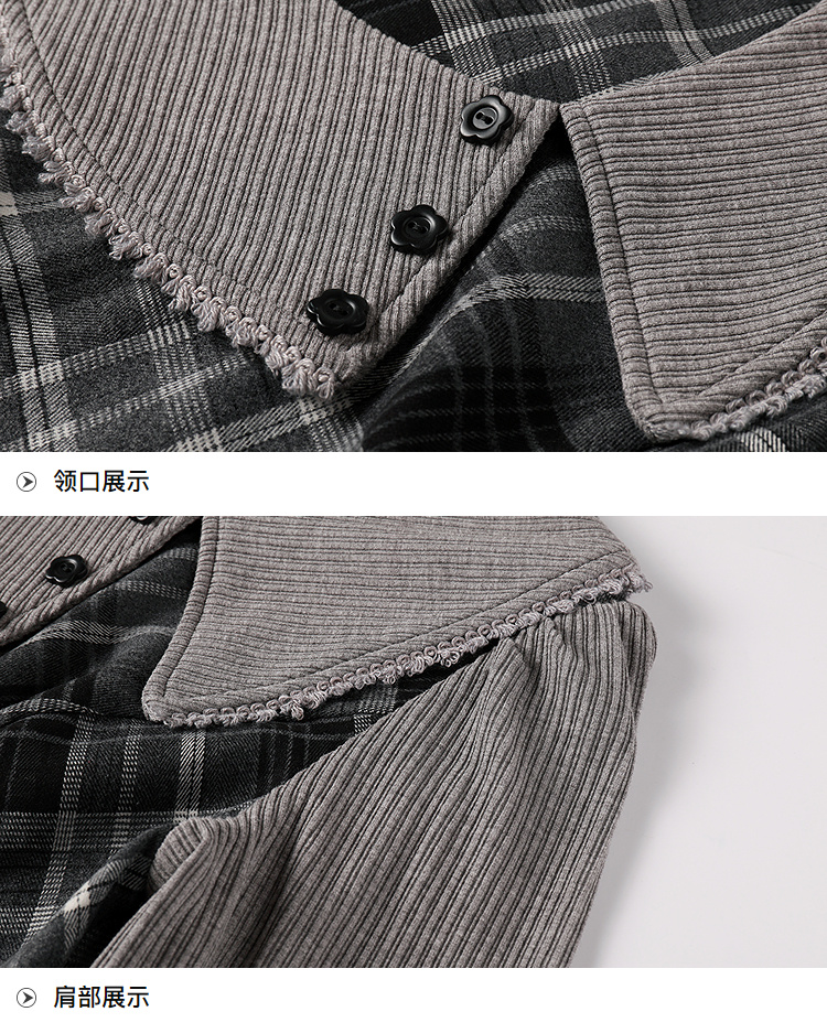 奢姿大码女装2025冬季减龄格纹连衣裙胖妹妹娃娃领设计时尚裙子9954894337