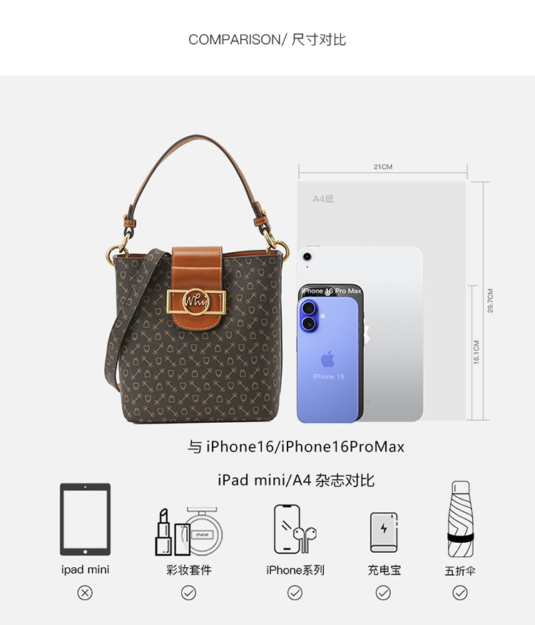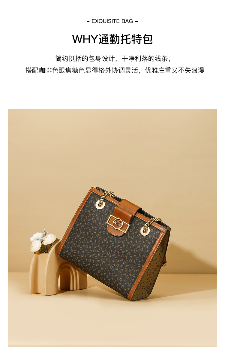 WHY新款印花托特包女2026夏季大容量单肩包粉色通勤手提包YAP11787Z