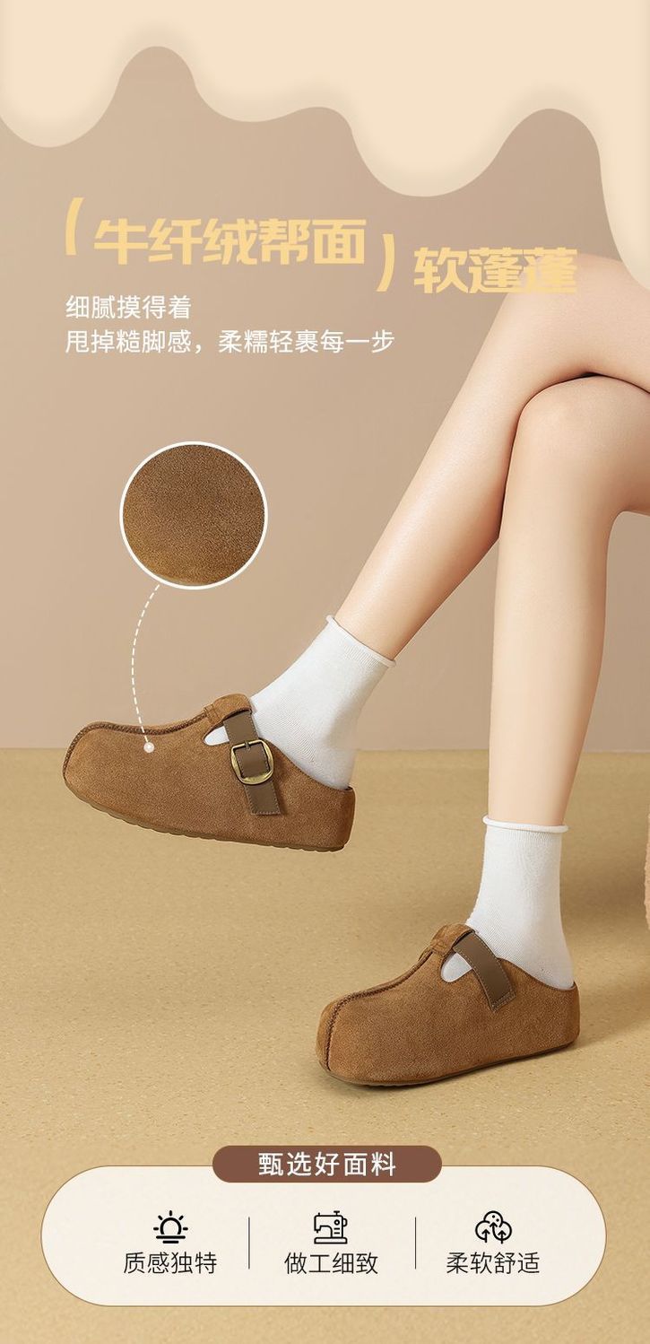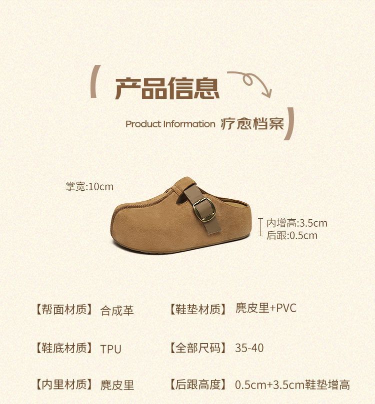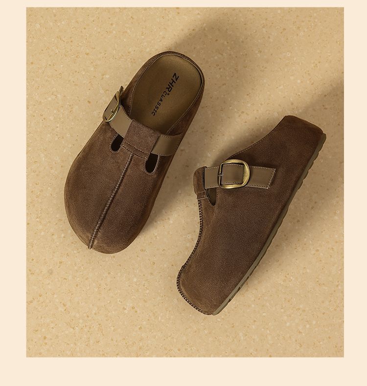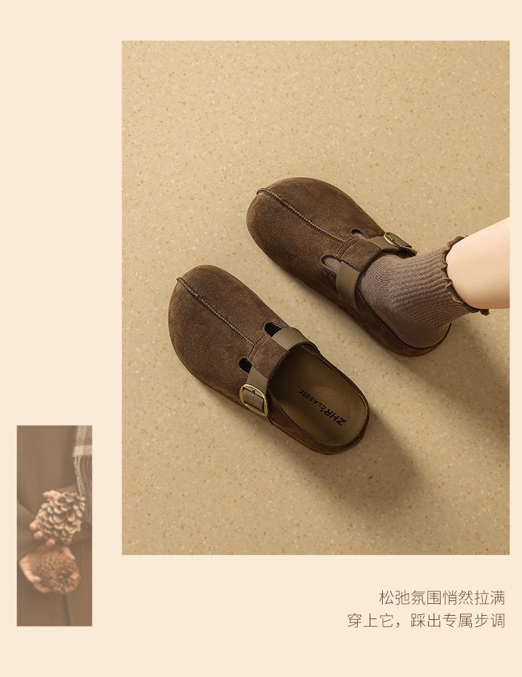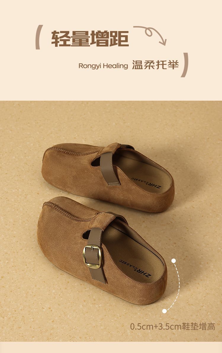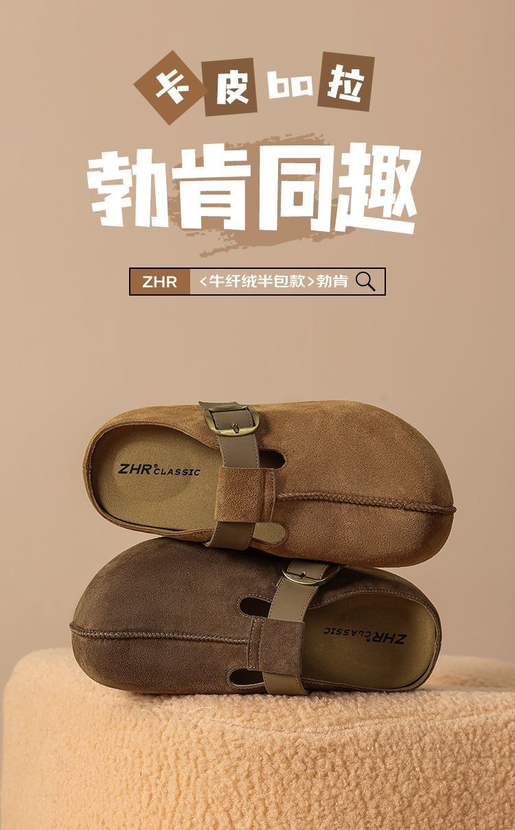 ZHR则则卡皮巴拉风勃肯鞋女2026春秋季复古轻便面包鞋增高包头拖鞋