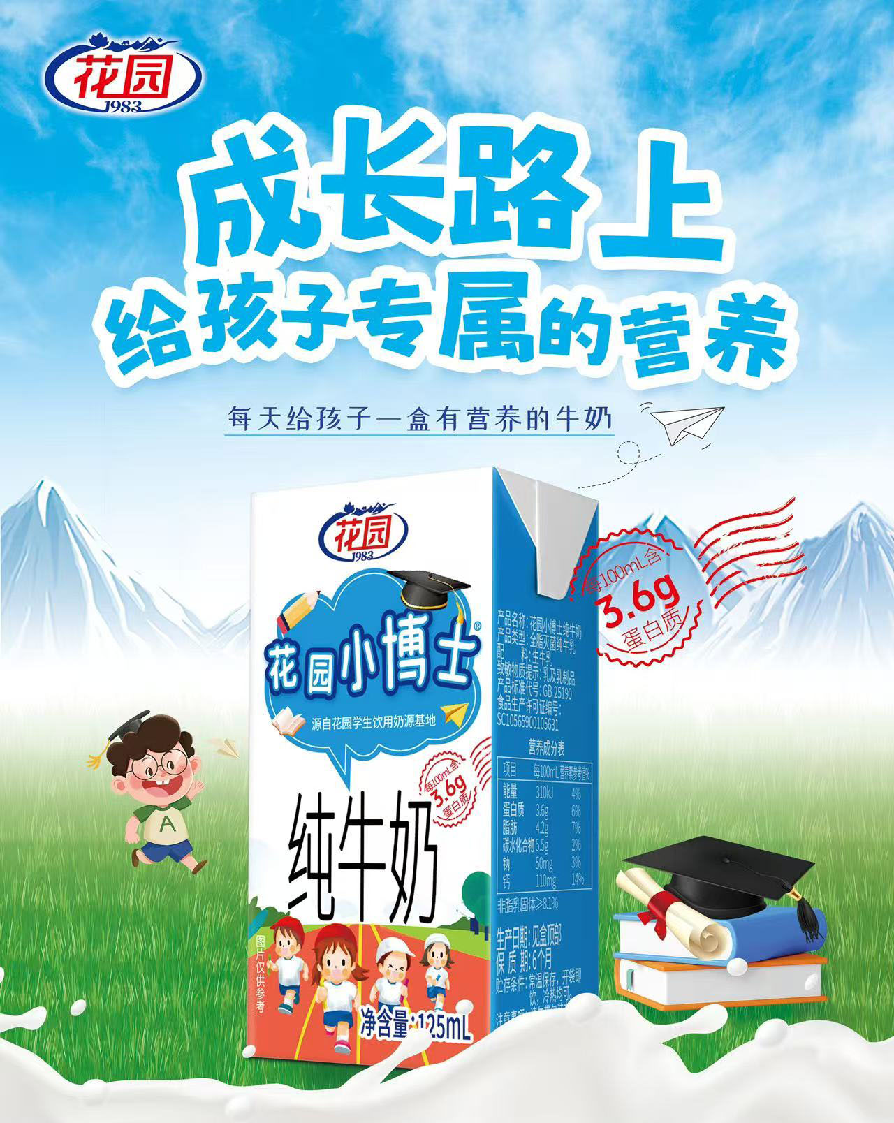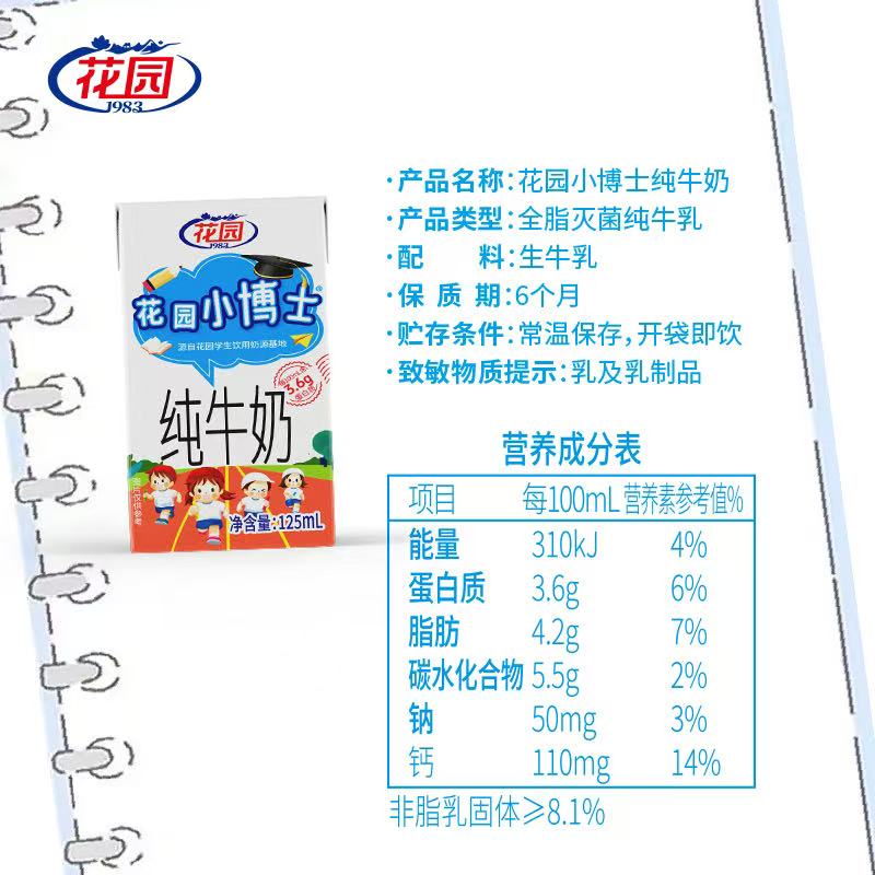 花园1983小博士纯牛奶(125ml*20瓶/箱 蛋白含量3.6)生产日期: 3月15日