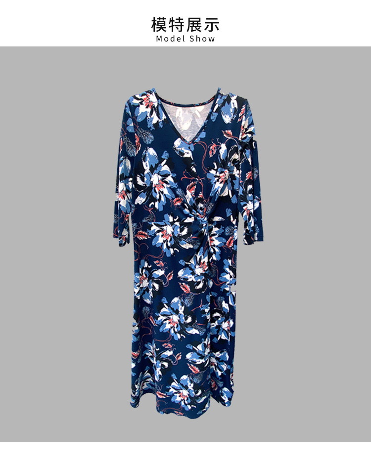 VIVIAN LIU Y2257403秋女装新款方V领宽松长袖印花针织连衣裙