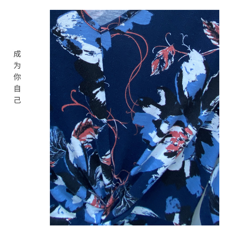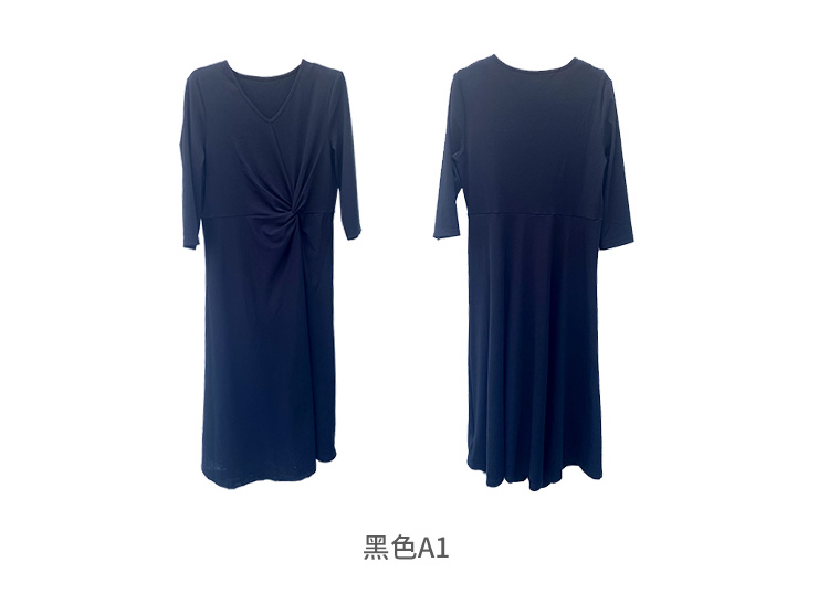 VIVIAN LIU R2427401春女装新款V领腰部打结七分袖针织连衣裙