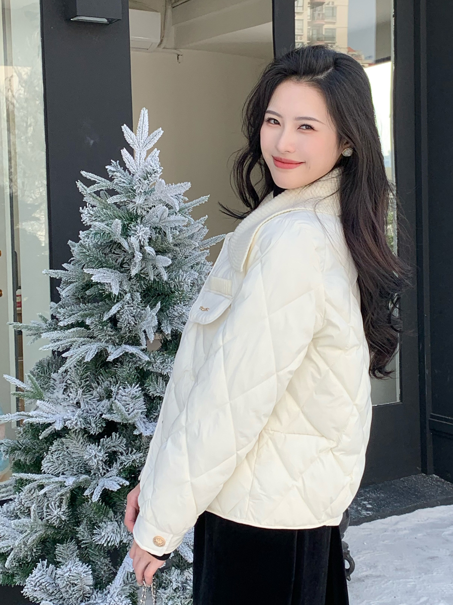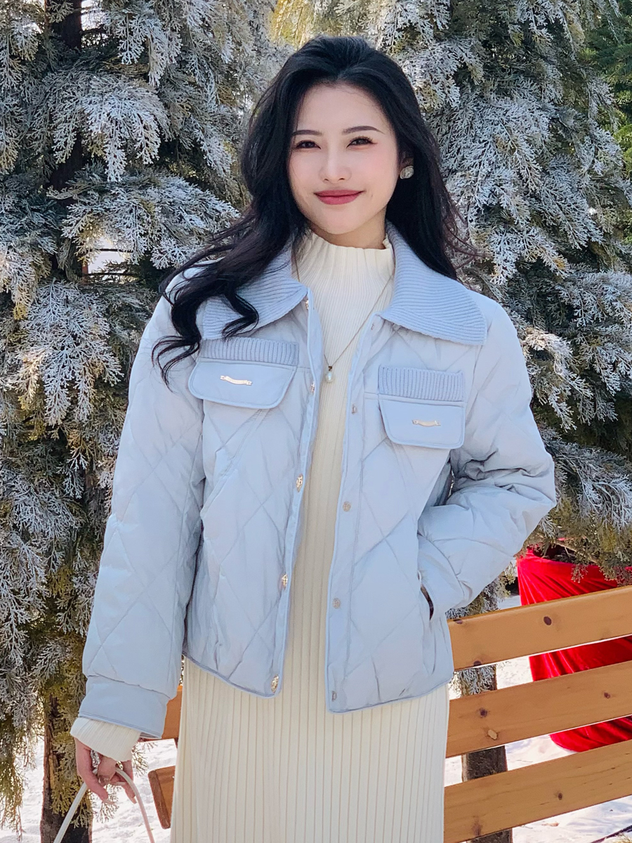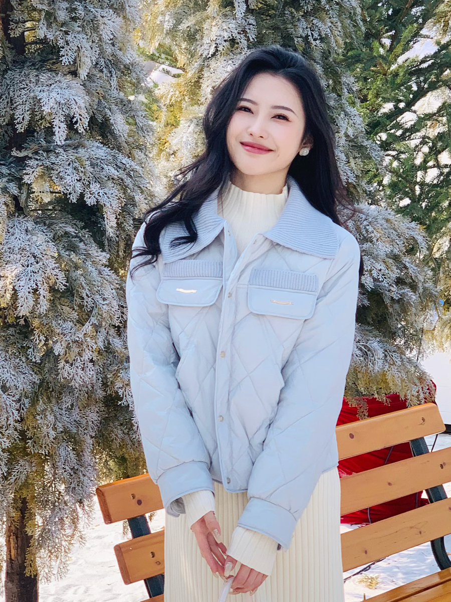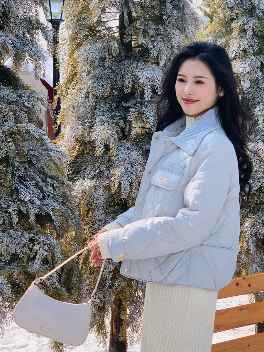 【百图lulu定制】【预售7天发】【黑科技香风棉外套】石墨烯云绒 毛衣领拼接 香风菱形格纹 外套