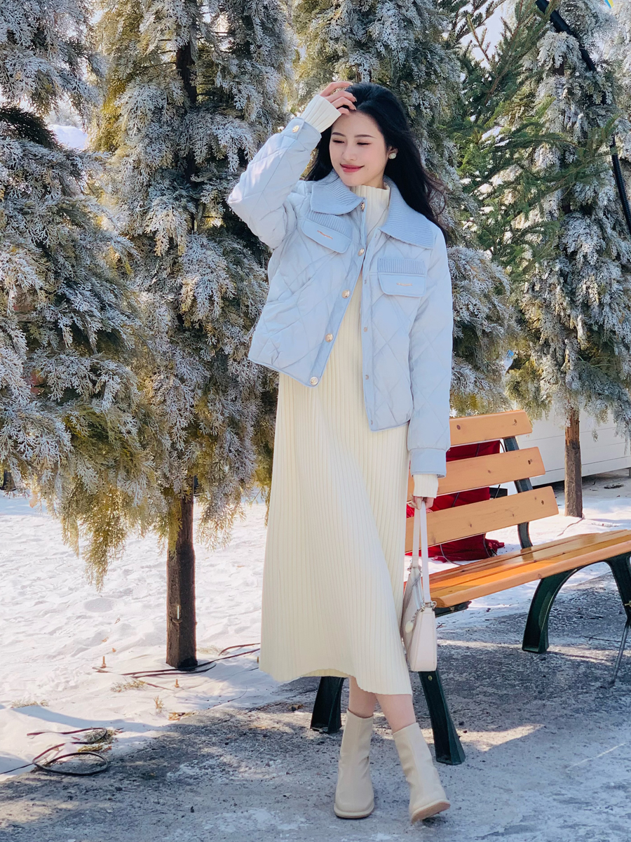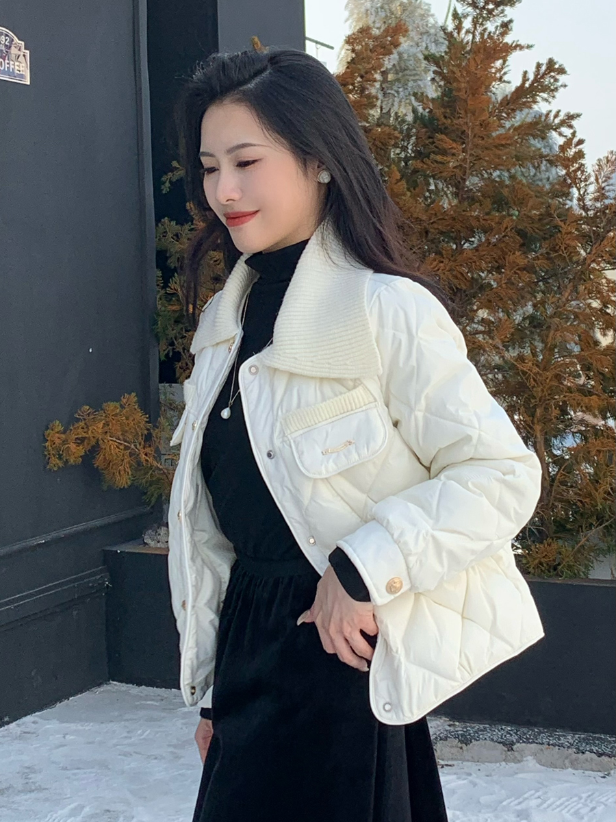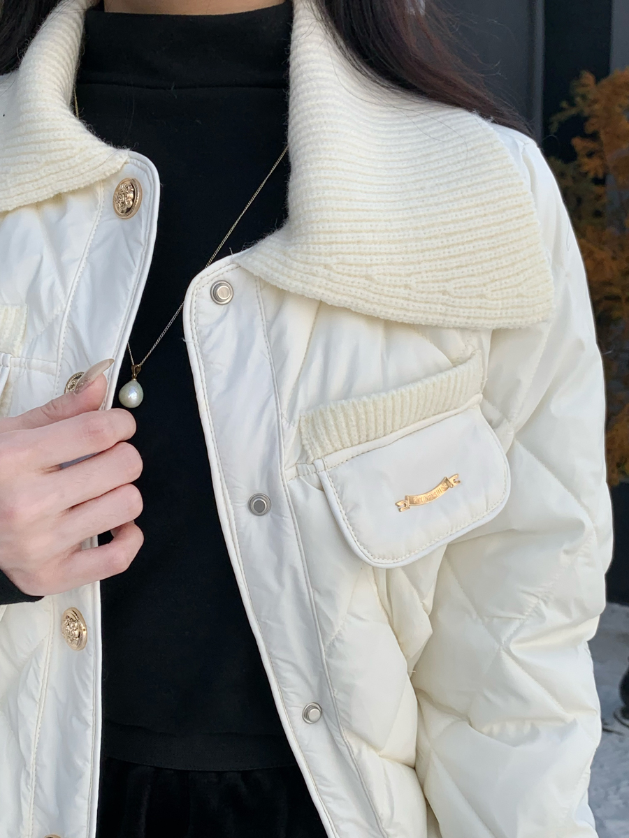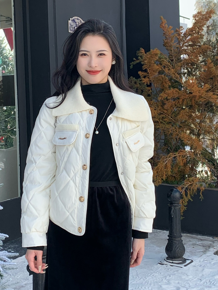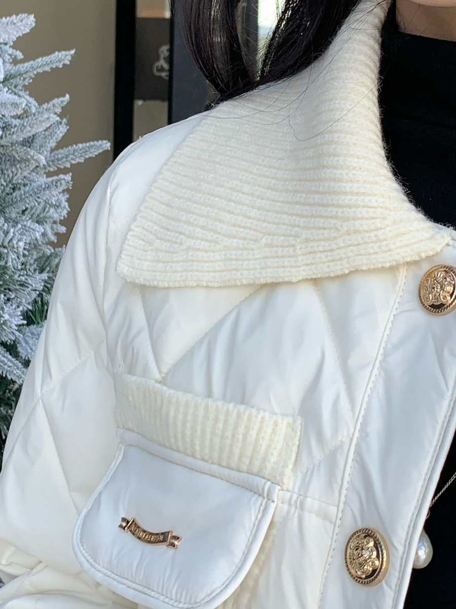 【百图lulu定制】【预售7天发】【黑科技香风棉外套】石墨烯云绒 毛衣领拼接 香风菱形格纹 外套
