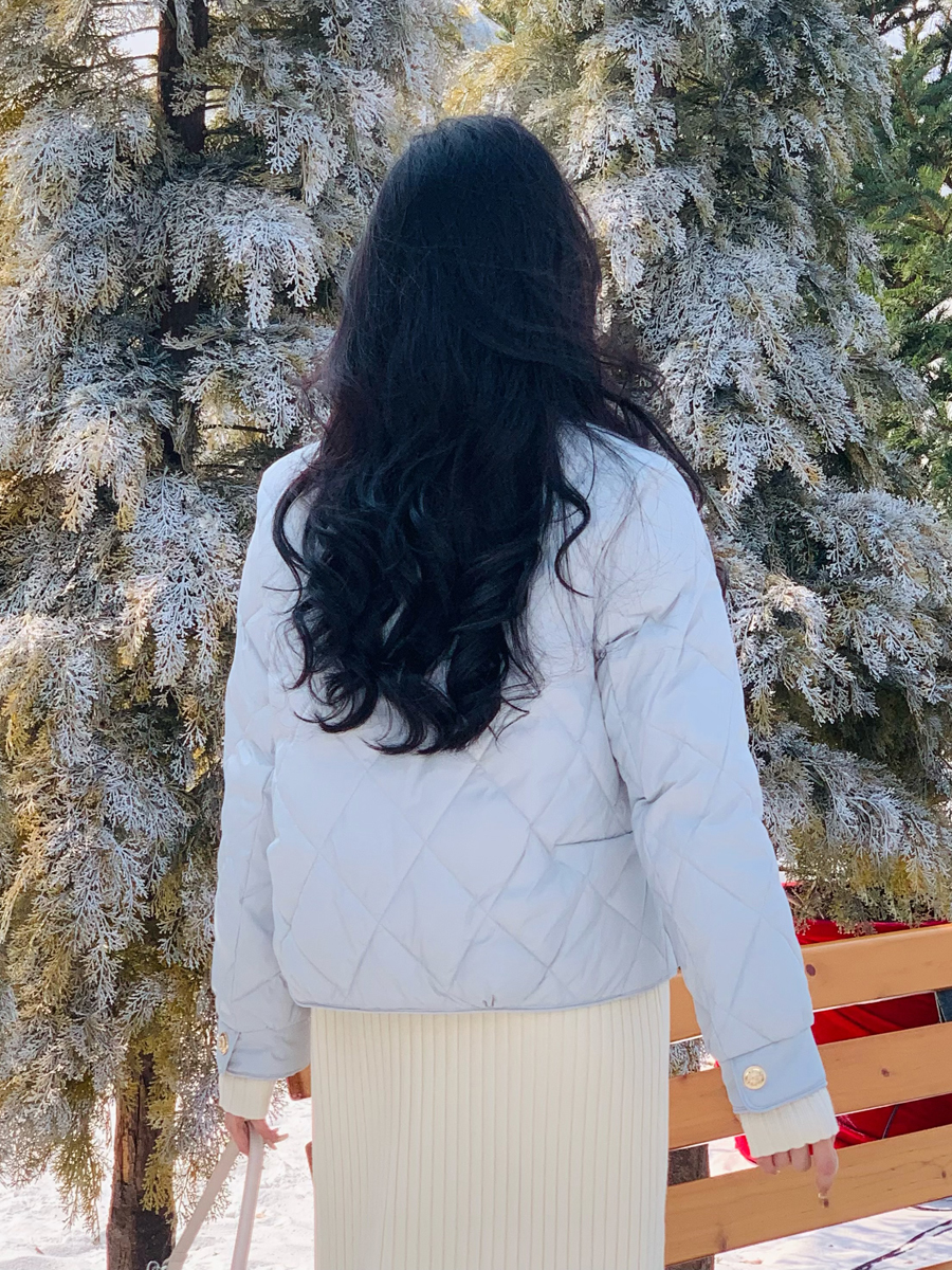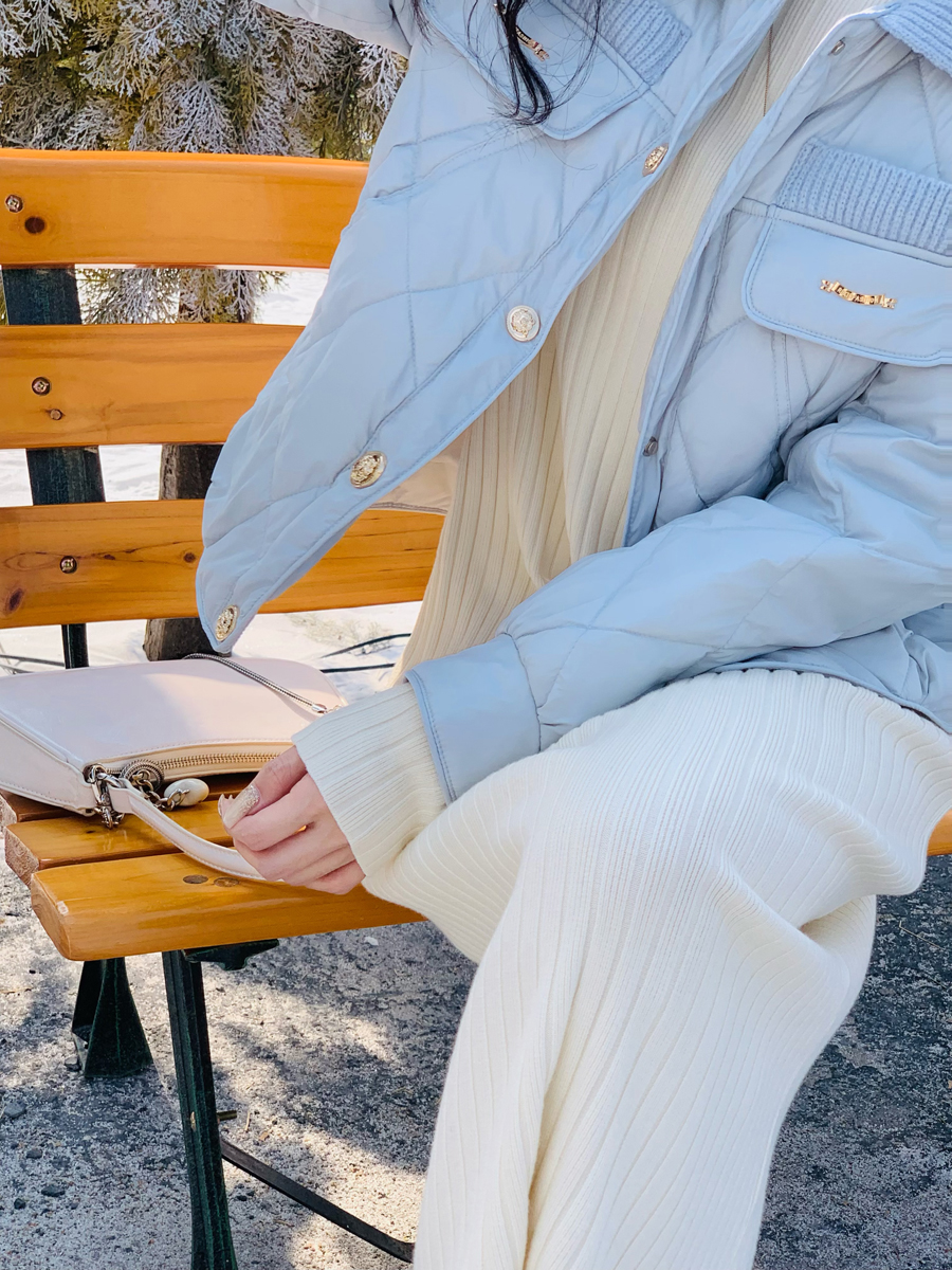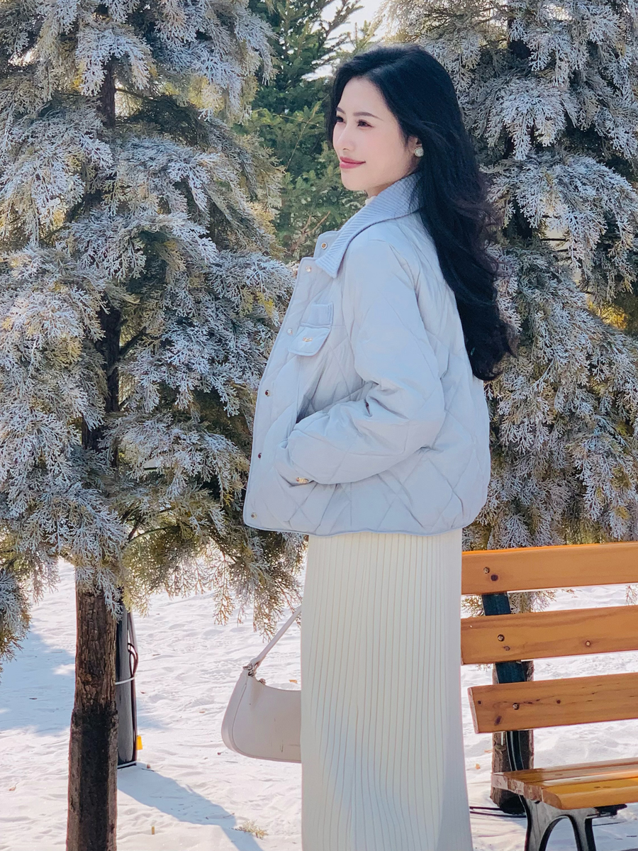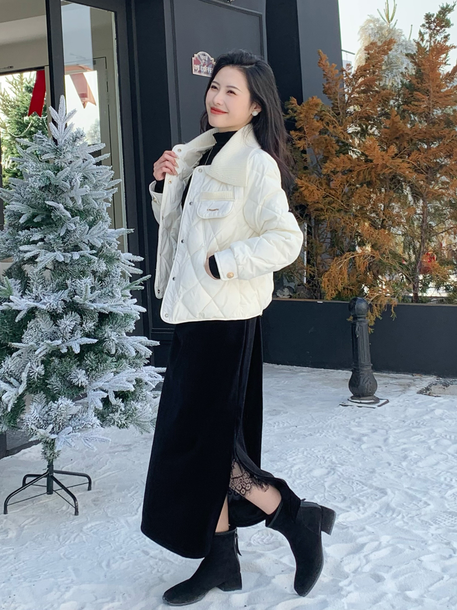 【百图lulu定制】【预售7天发】【黑科技香风棉外套】石墨烯云绒 毛衣领拼接 香风菱形格纹 外套