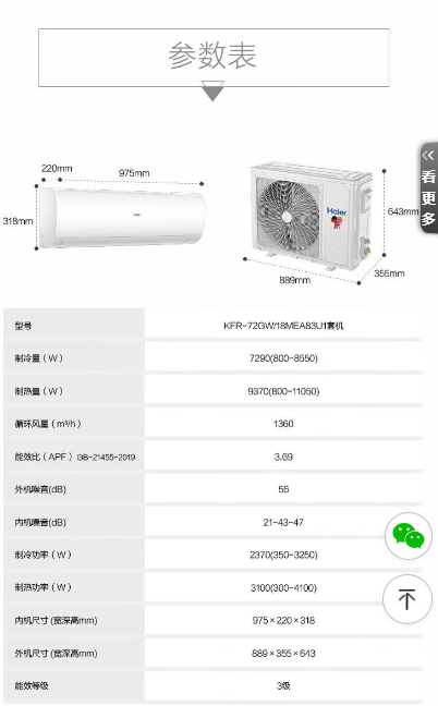 海尔( Haier) KFR-72GW/18MEA83U1 3匹+三级能效+变频冷暖+自清洁+壁挂式空调