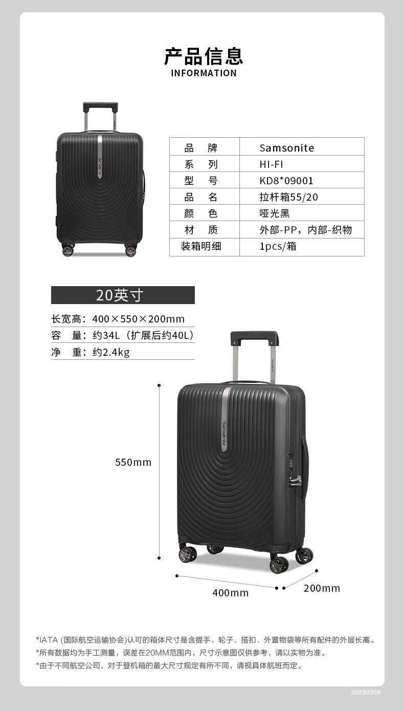 新秀丽(Samsonite) //时尚万向轮拉杆箱旅行箱 商务差旅男女旅行登机箱 DZ1 KD8 KD8*09001 25英寸