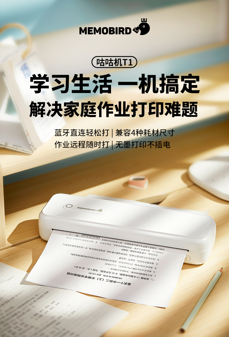 【咕咕机学习打印机T1(A4打印机)】 错题机初高中学生专用家用宿舍整理试卷练习题小型无线wifi蓝牙便携式迷你热敏无墨