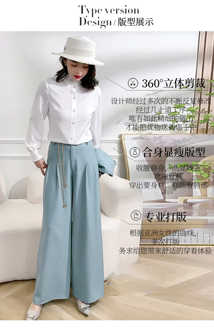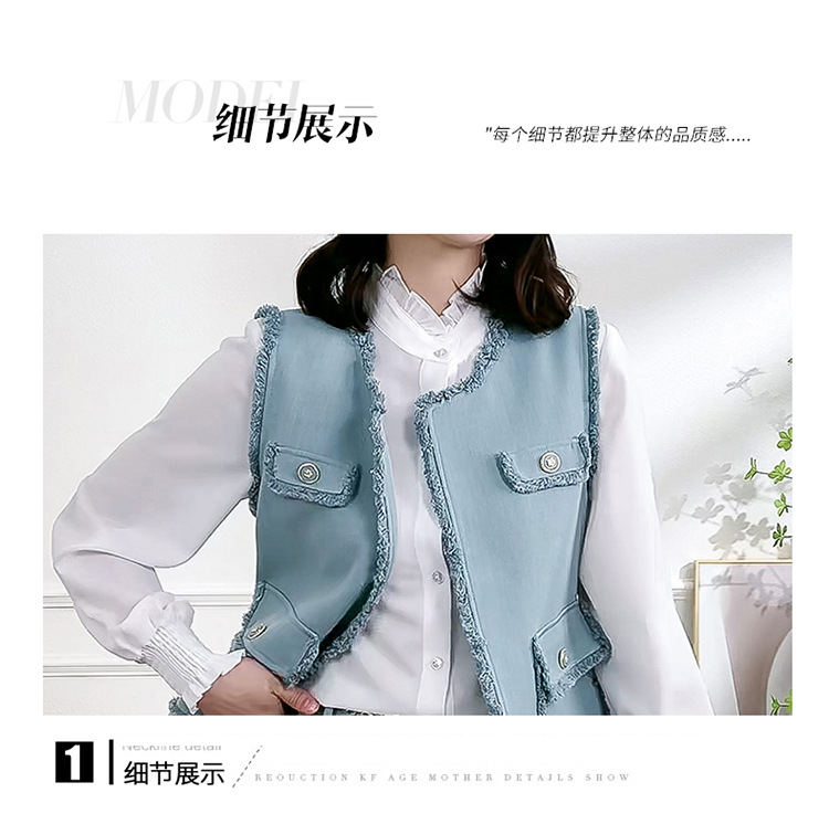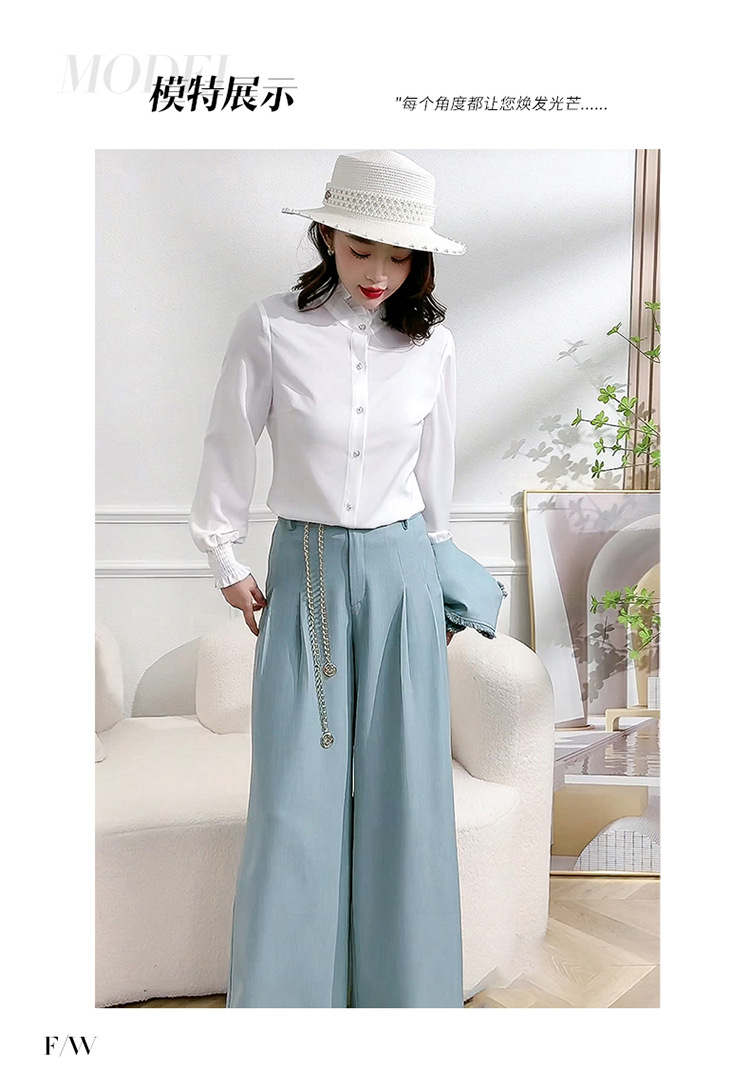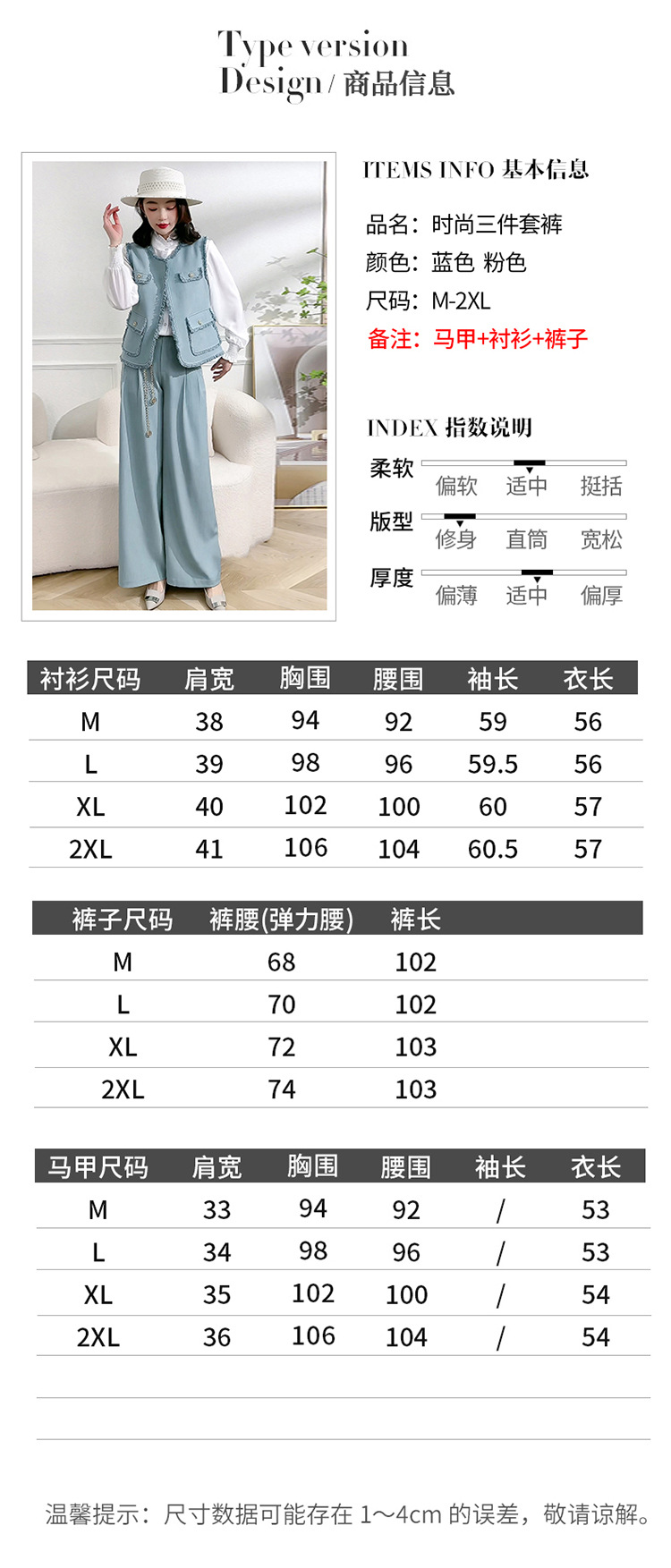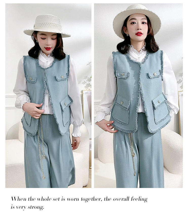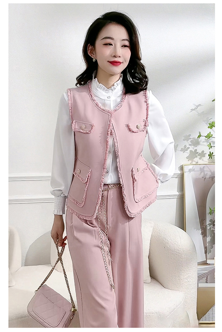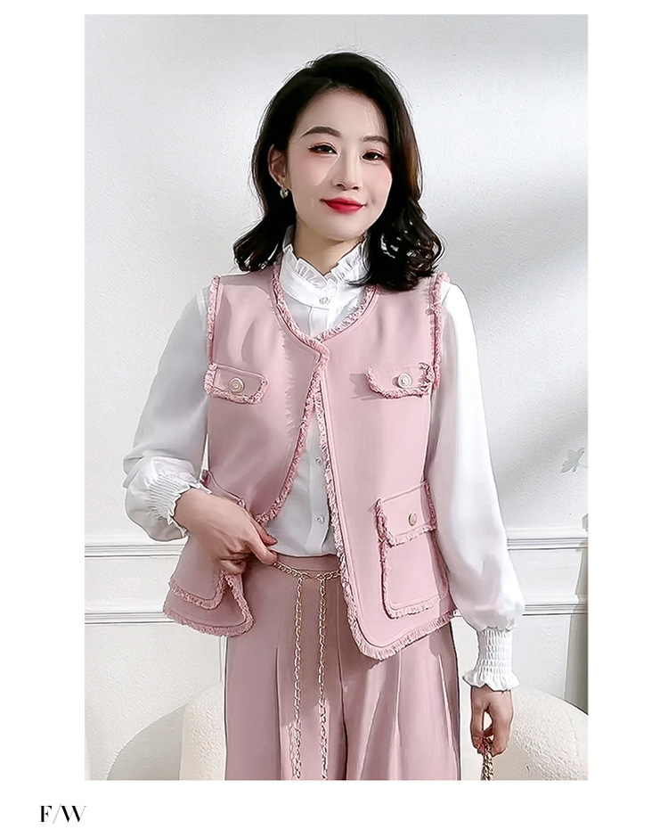 春款短款内搭衬衫+时髦外搭马甲+宽松休闲阔腿裤三件套QYM-XQD-70A2426-L