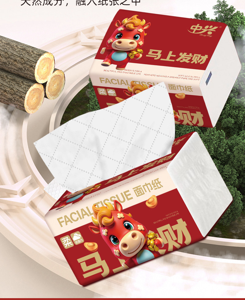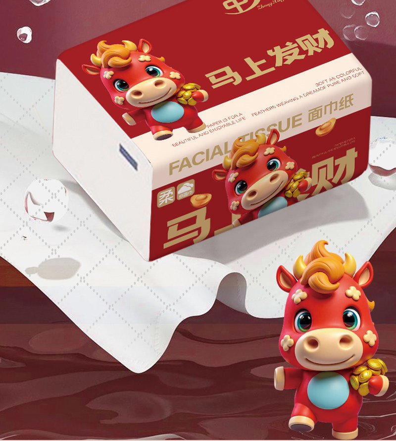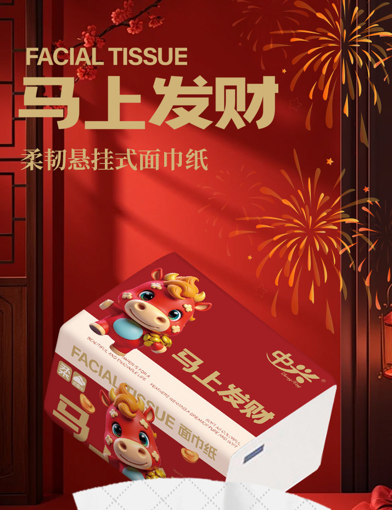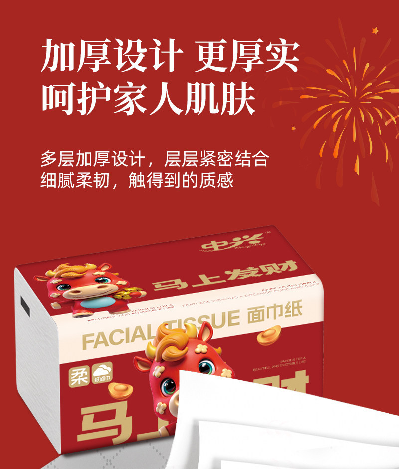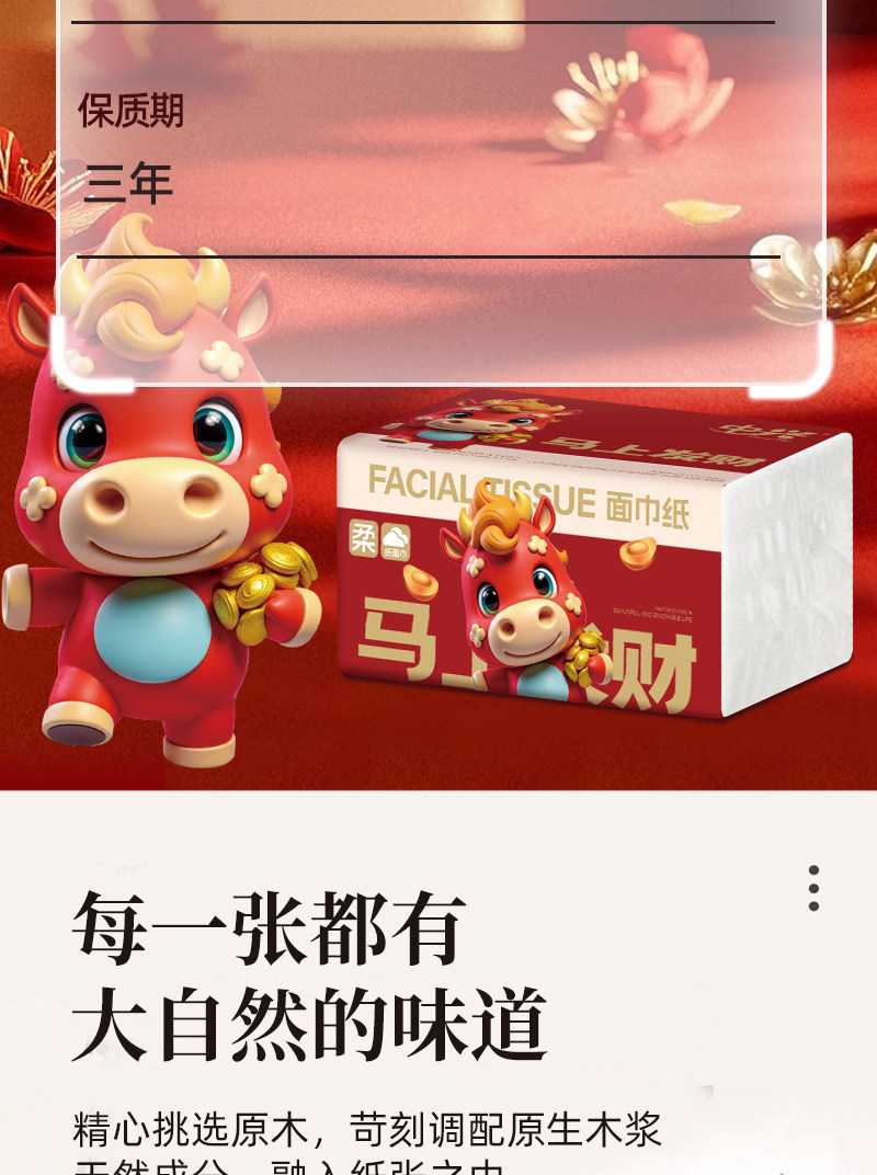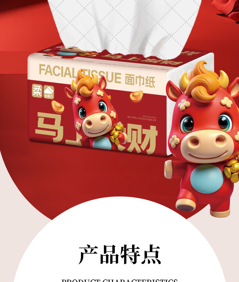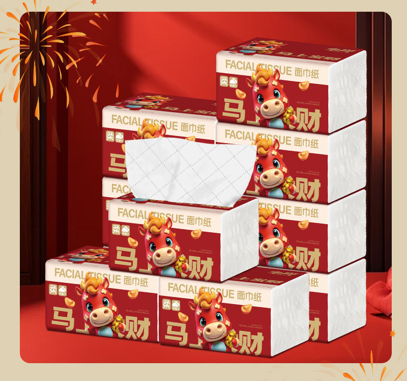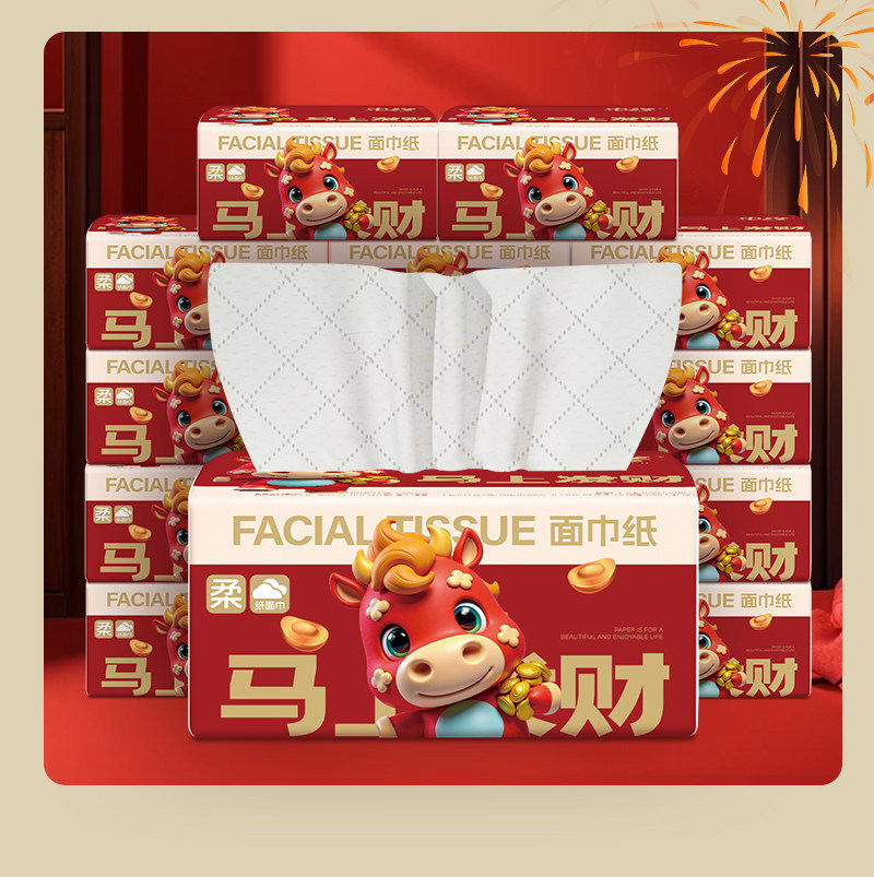 马上发财 【马年喜庆抽纸纸巾】家用整箱餐巾纸 面巾纸纸抽大包卫生纸