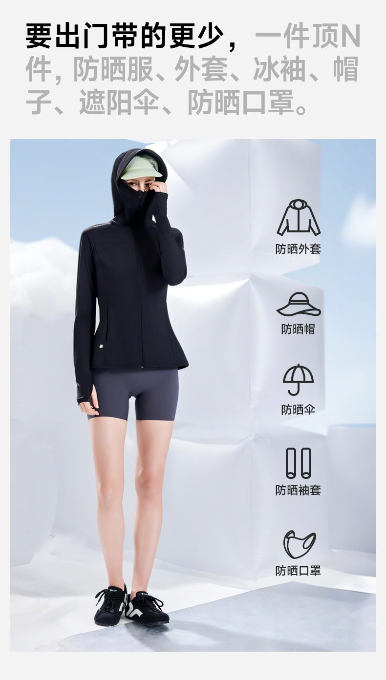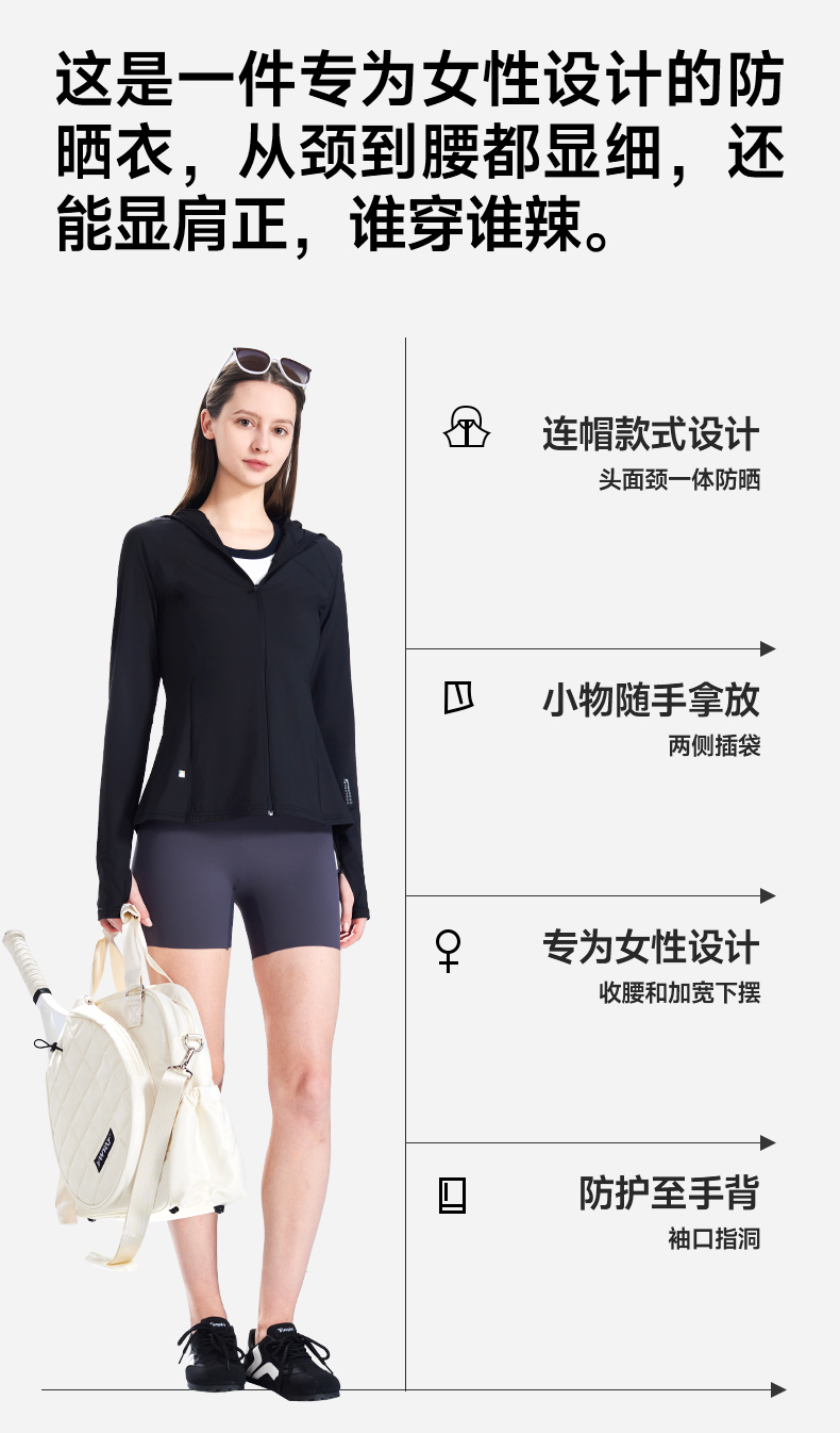 【困妈】Supield素湃专业全波段防晒衣防紫外线半身款防晒披肩外套女夏季F573