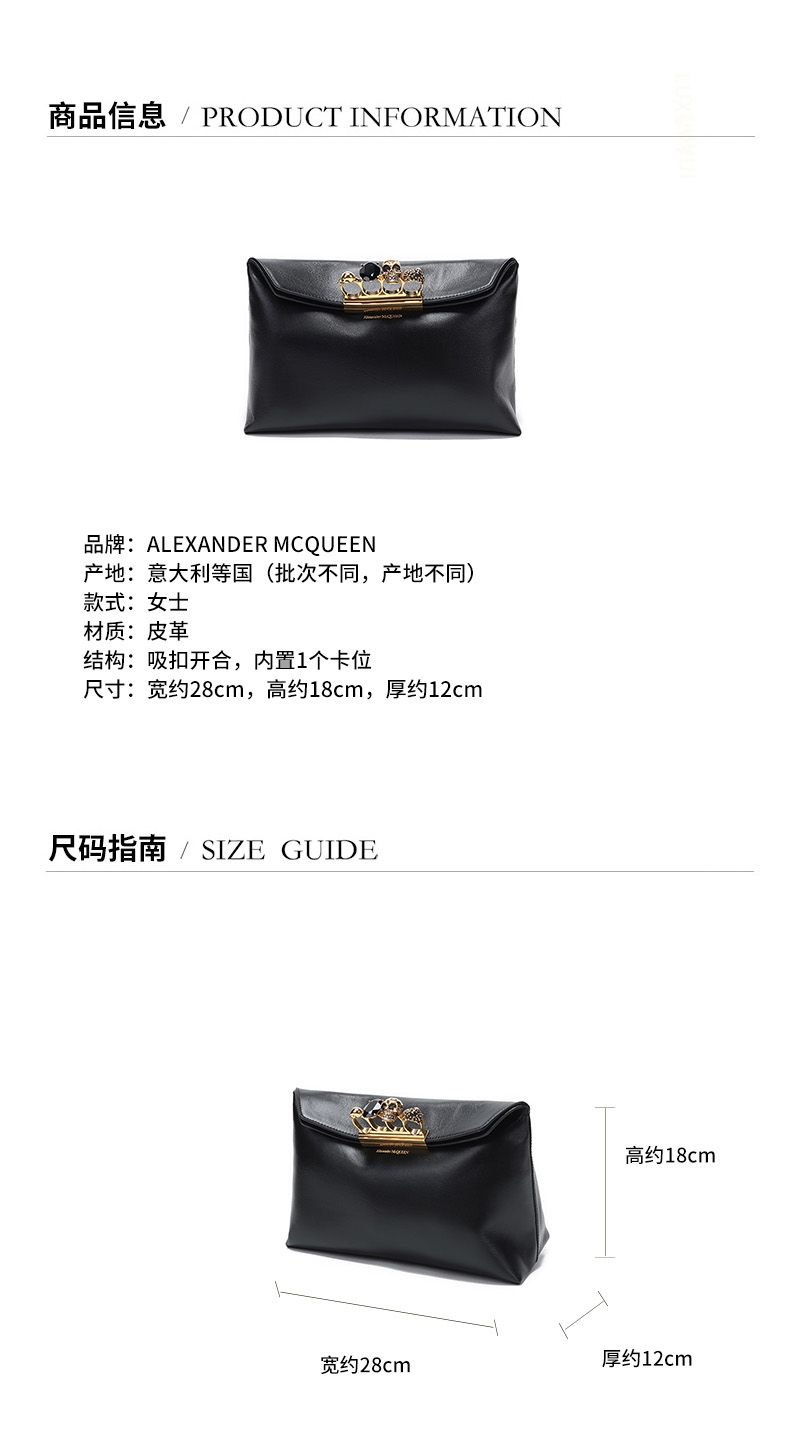 【国内现货】Alexander McQueen/亚历山大麦昆 2021款 女士皮革手拿包 631864 CSRRT