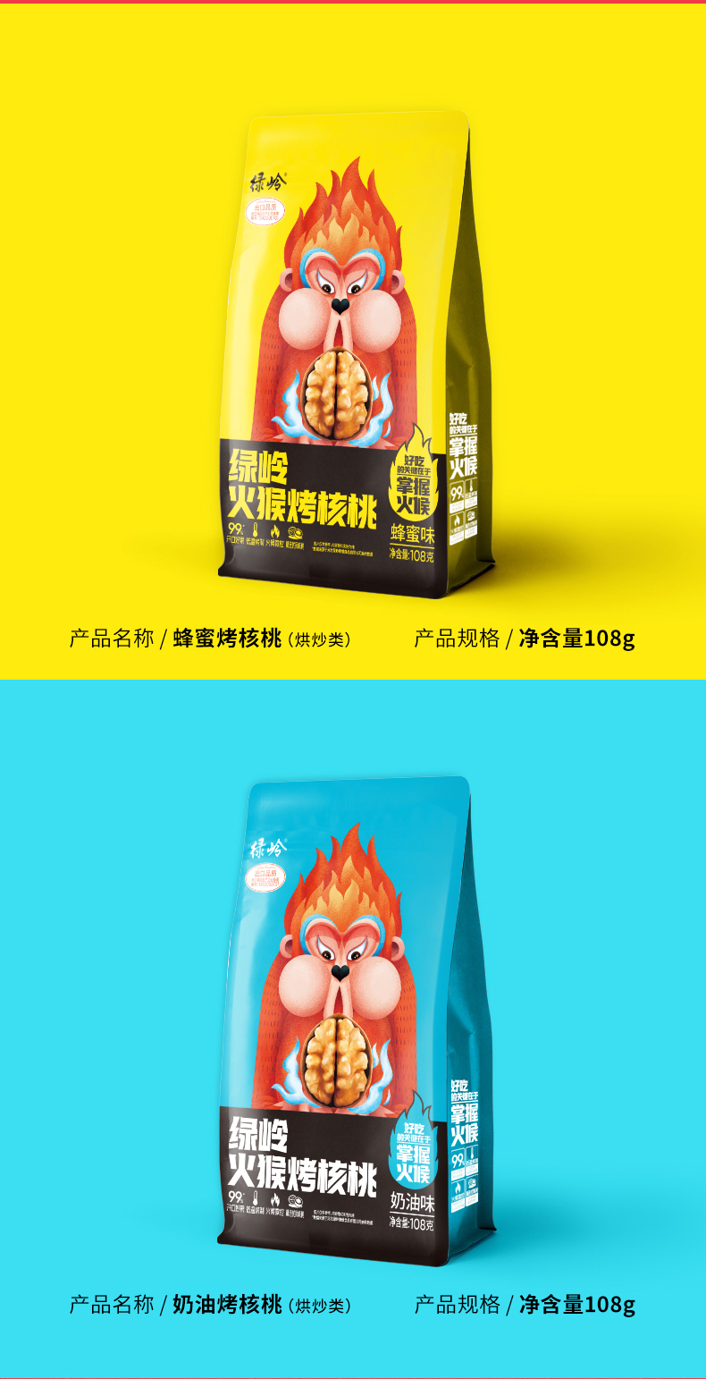绿岭 火猴 烤核桃 蜂蜜味、五香味 108g/袋
