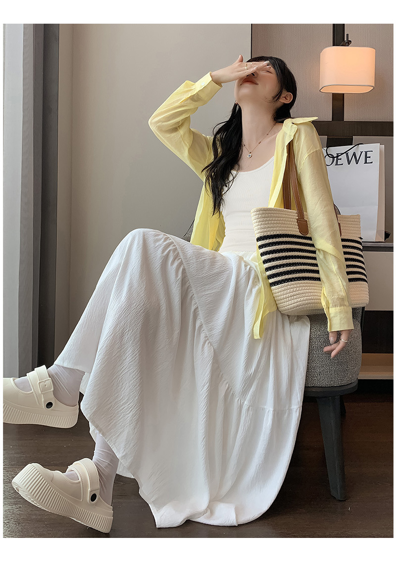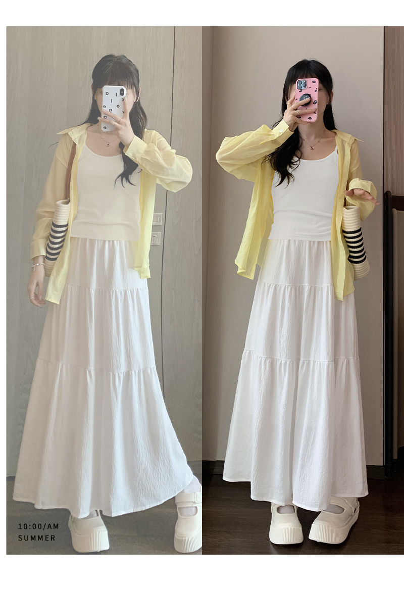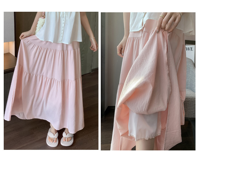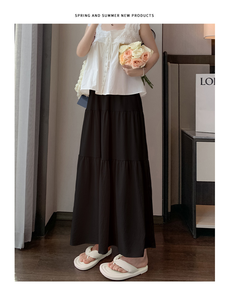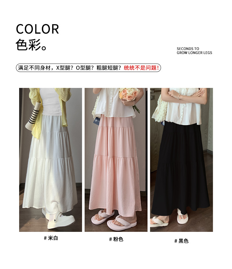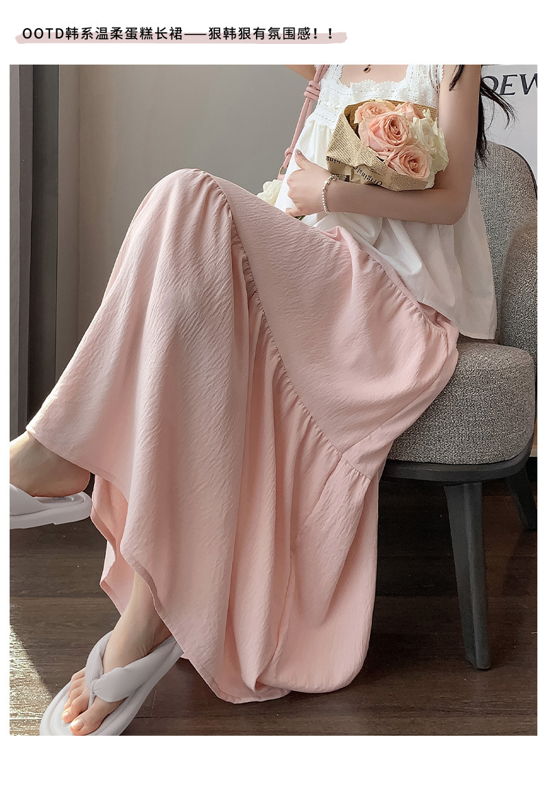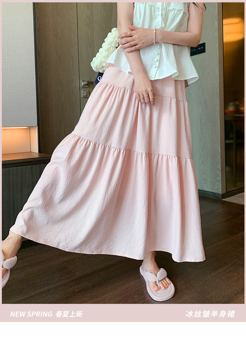 【冰丝皱温柔风半身裙】夏季新款 甜美高腰中长裙 显瘦百搭A字裙长裙