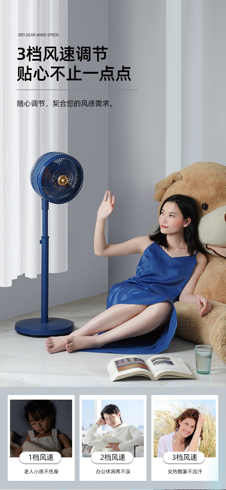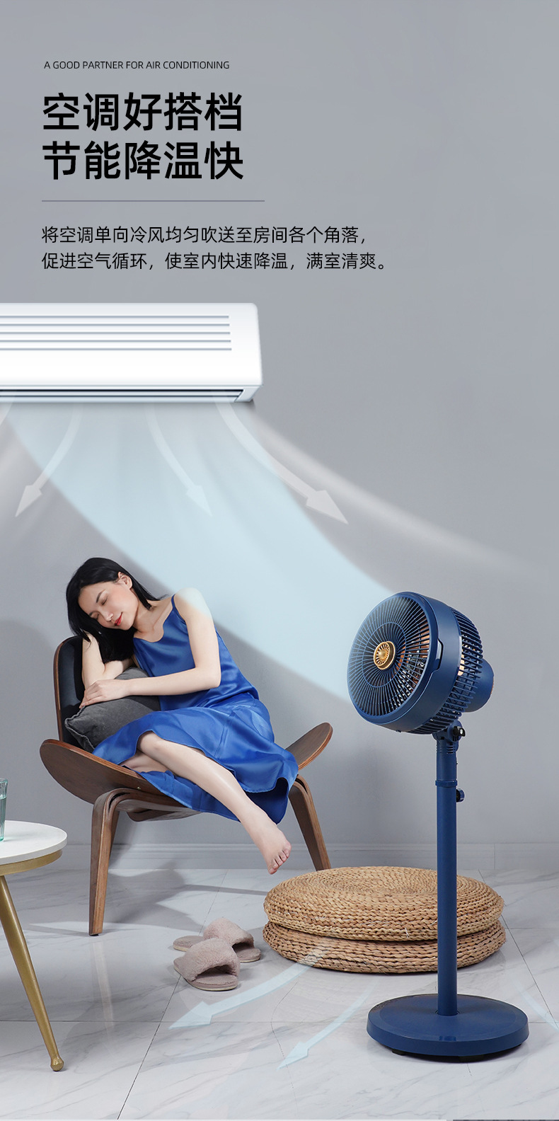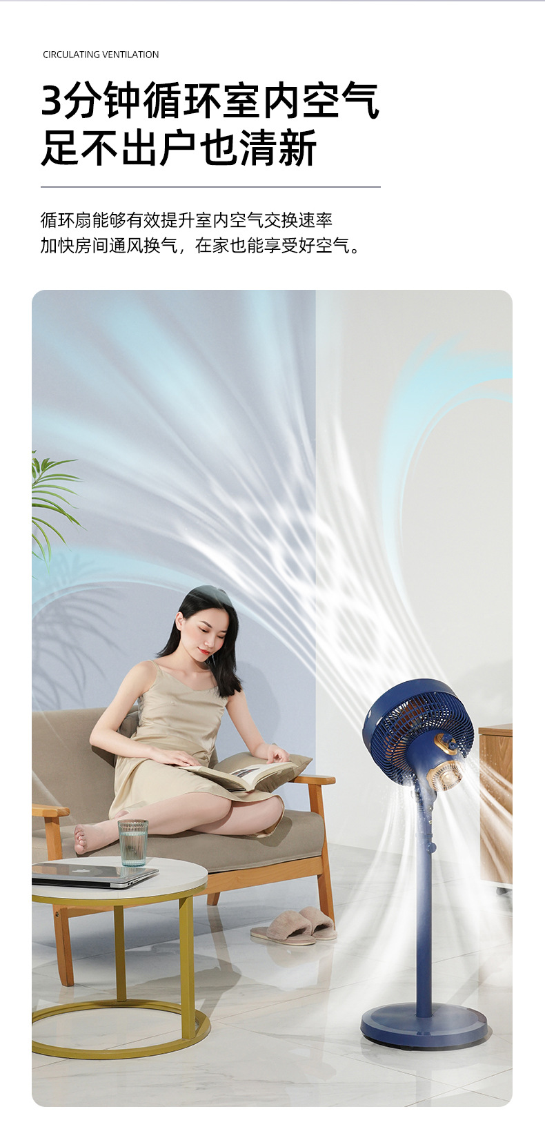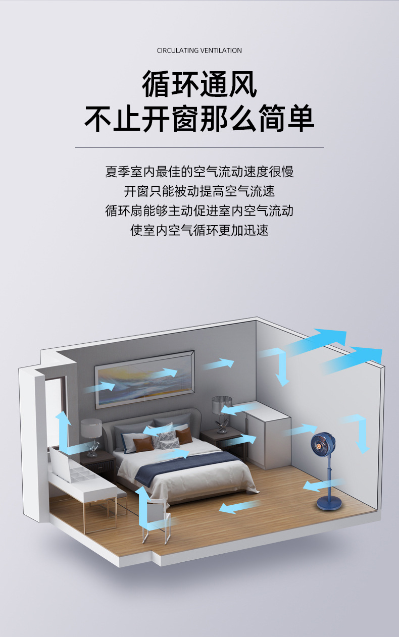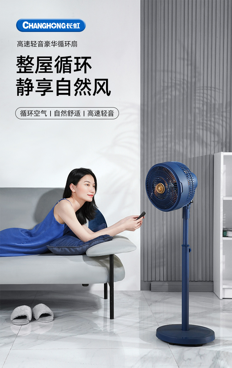【长虹循环扇家用电风扇】落地扇8寸 立式风扇空气循环扇 广角摇头高速轻音