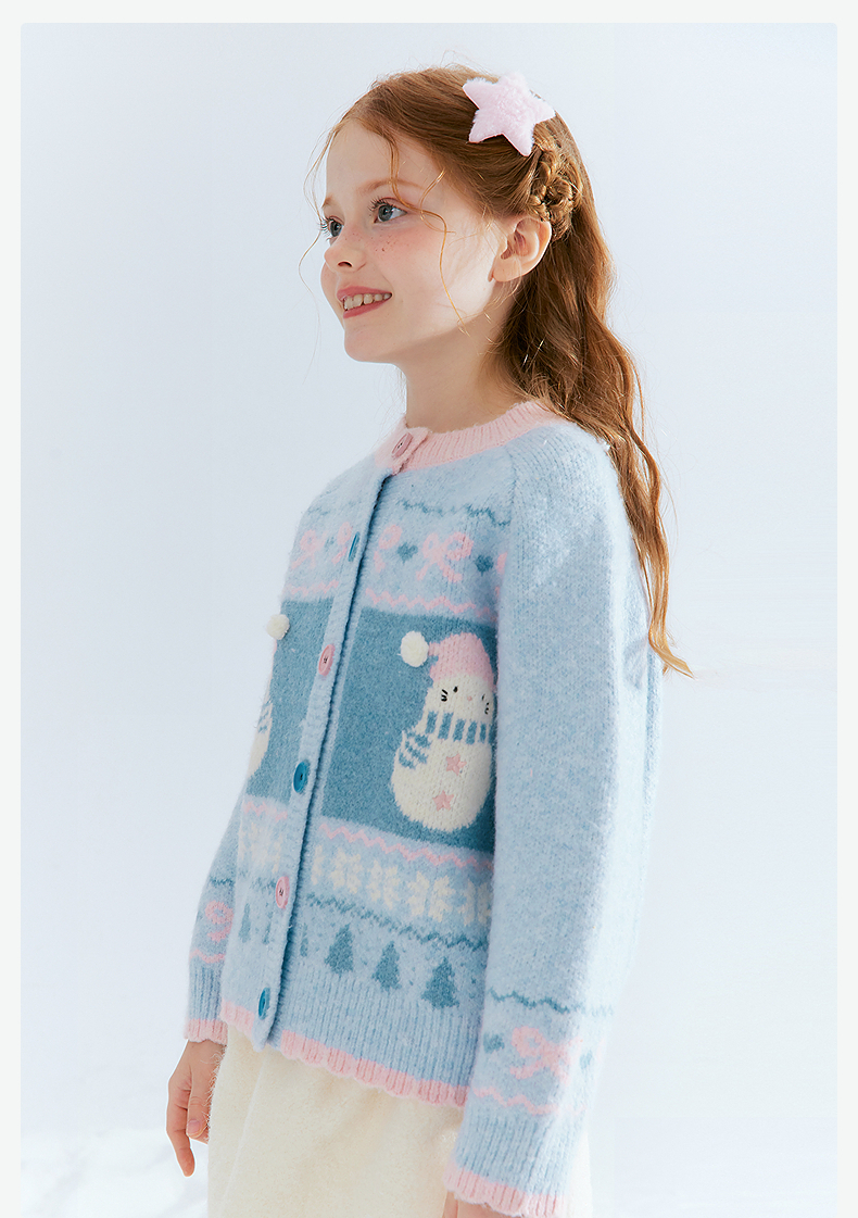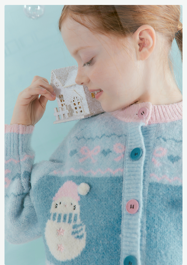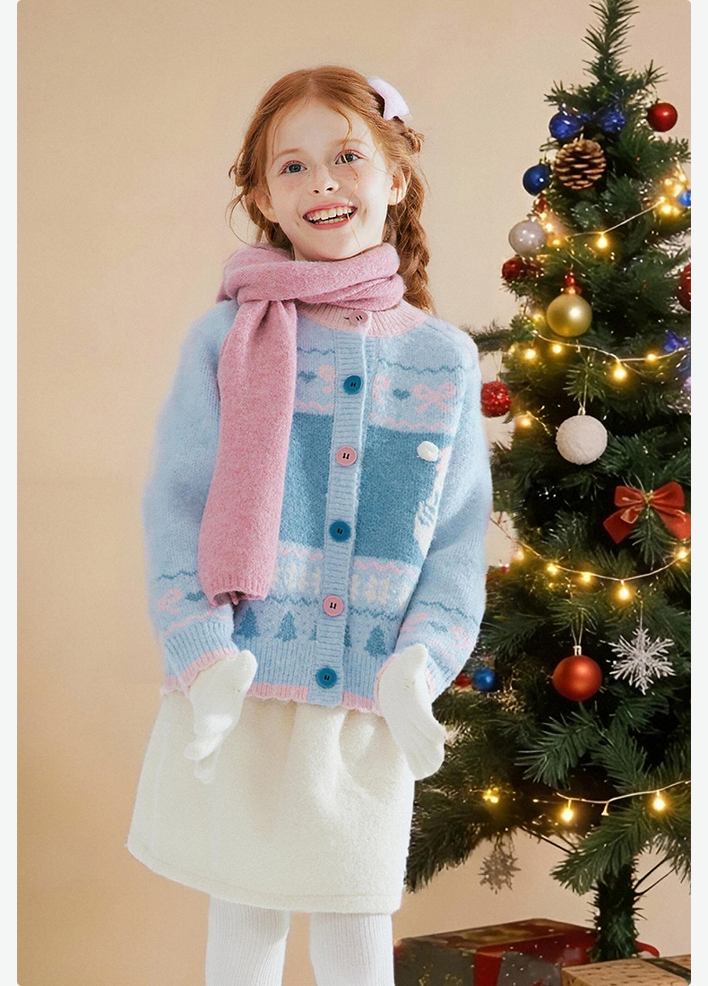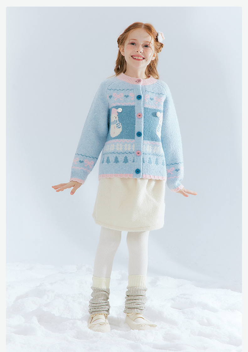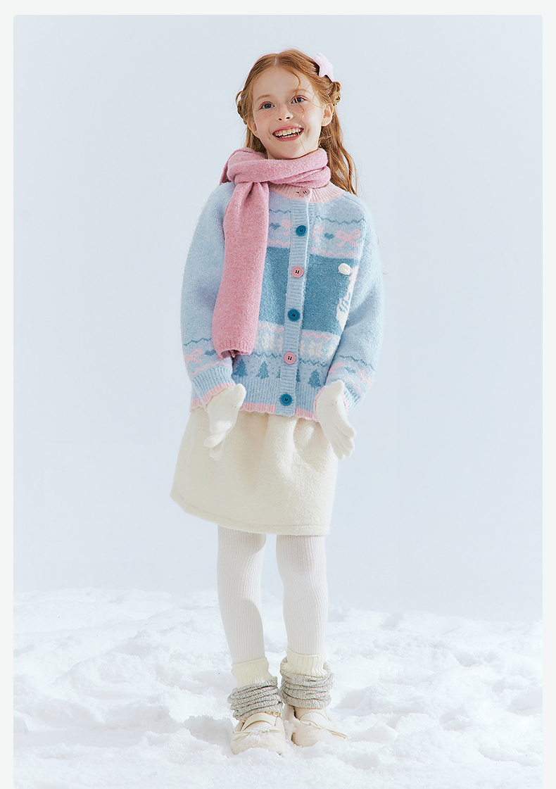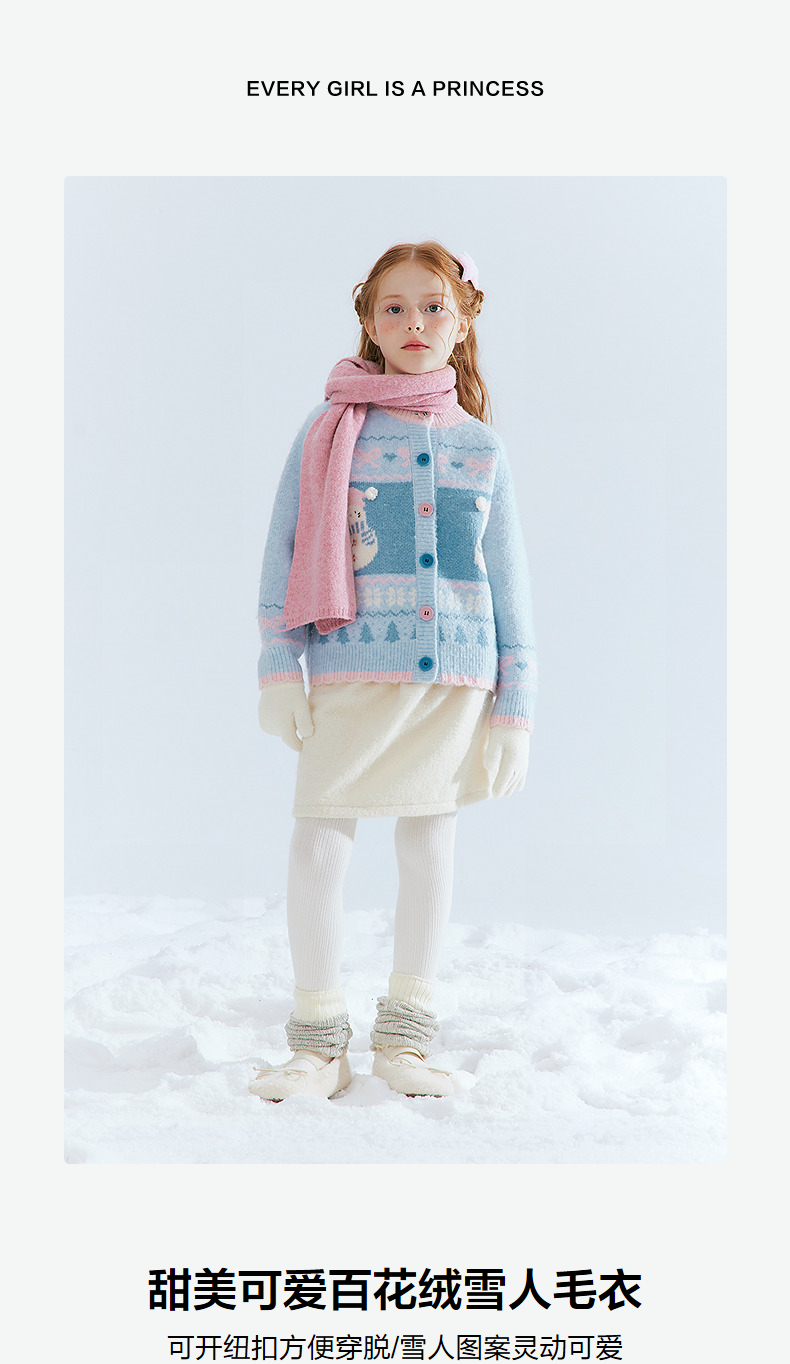 笛莎Deesha 童装女童厚款针织开衫2025年冬季新款大童女孩儿童时尚毛衣