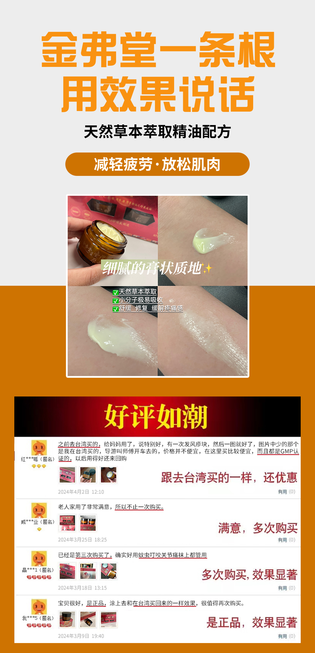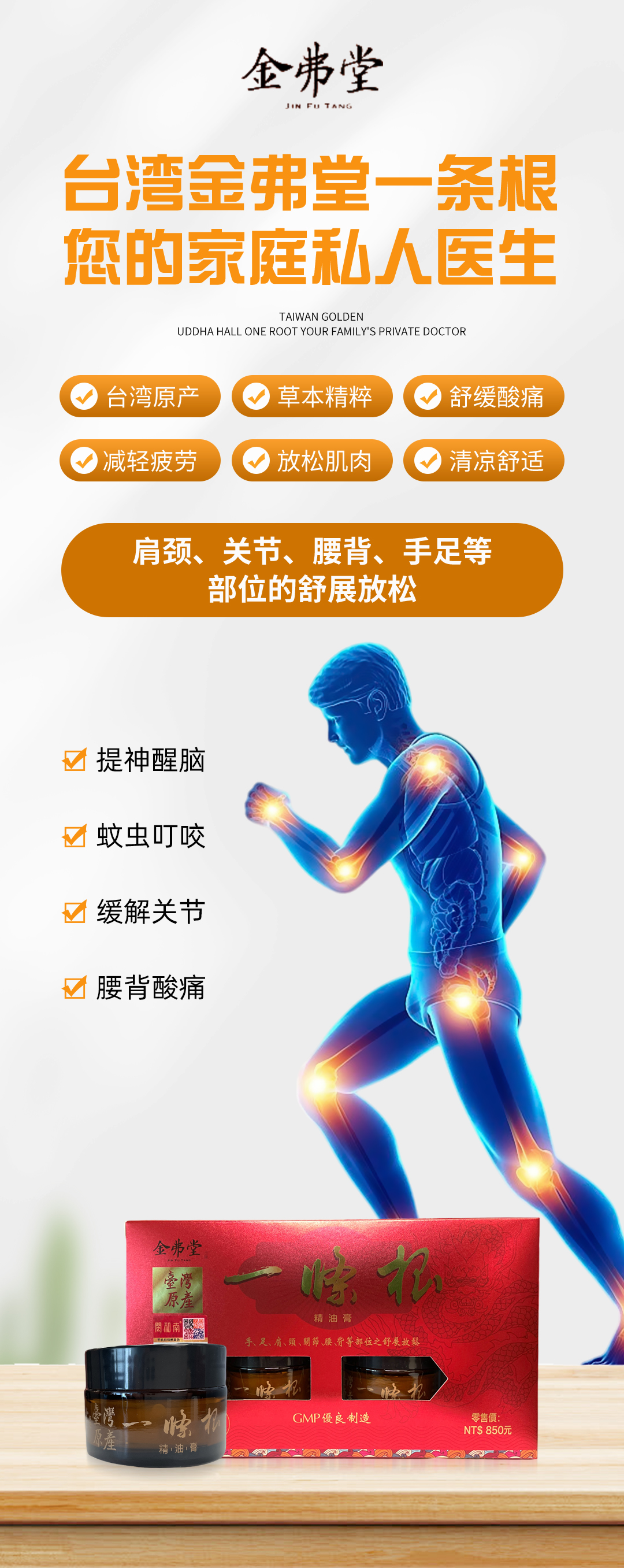 金弗堂一条根精油膏台湾原产草本放松肌肉缓解关节