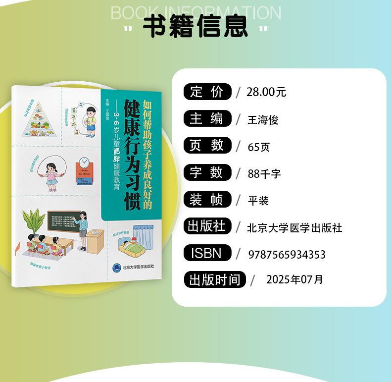 如何帮助孩子养成良好的健康行为习惯3~6岁儿童肥胖健康教育 王海俊 为广大家长和幼儿园教师提供专业的健康指导 北京大学医学出版社