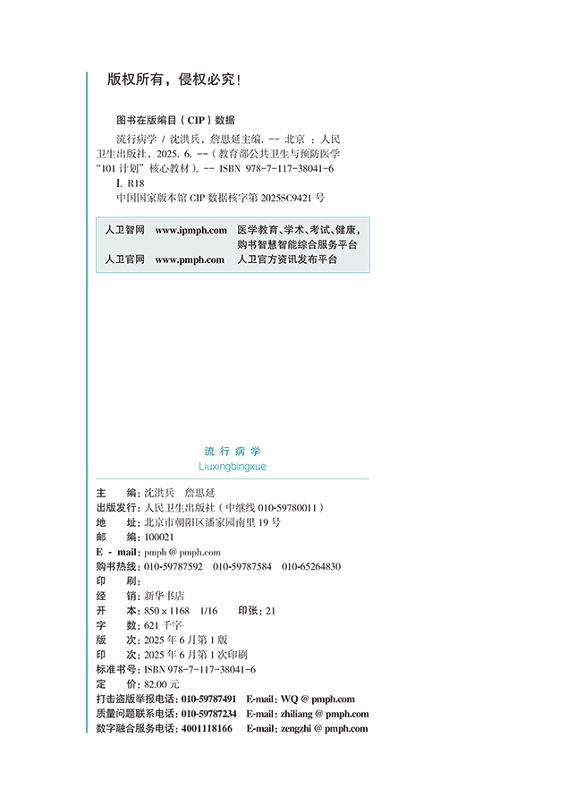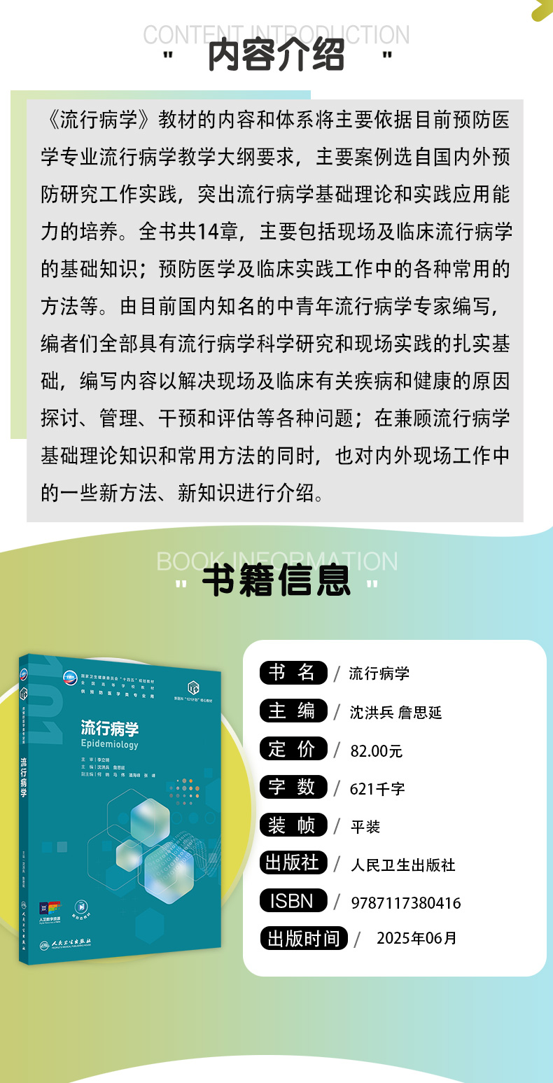 流行病学 十四五规划教材全国高等学校教材 沈洪兵 詹思延 主编 供预防医学类专业用 学历教育教材 本科 预防医学 人民卫生出版社
